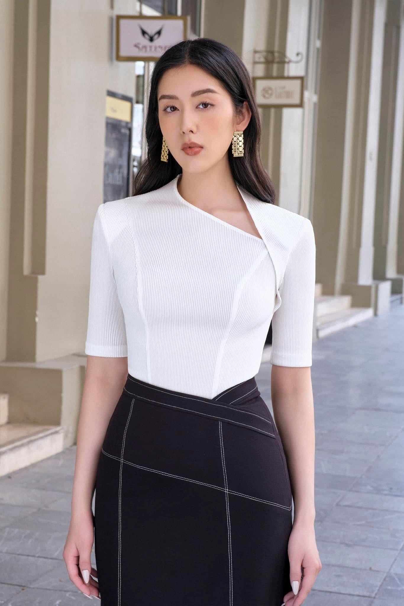 Note:*The product is ready to ship, shipping time varies from 5-15 days.**The product can be customized based on the measurement of 3 circumferences (bust, waist, hip) with an additional cost of 10-25%, and the customization time takes 1-3 days. Please contact us via emailΒ support@eegenstudio.comΒ or Eegen fanpage for further assistance. Product details Body-hugging top with a deviated collar, the top has shoulder padding.Material: 3D Rib Stretchy fabric Size & Fit - Model wears size: S- Model measurement: <165cm XS S M L XL XXL Shoulder 35 36 37 38 39 40 Bust 80 84 88 92 96 100 Waist 62 66...