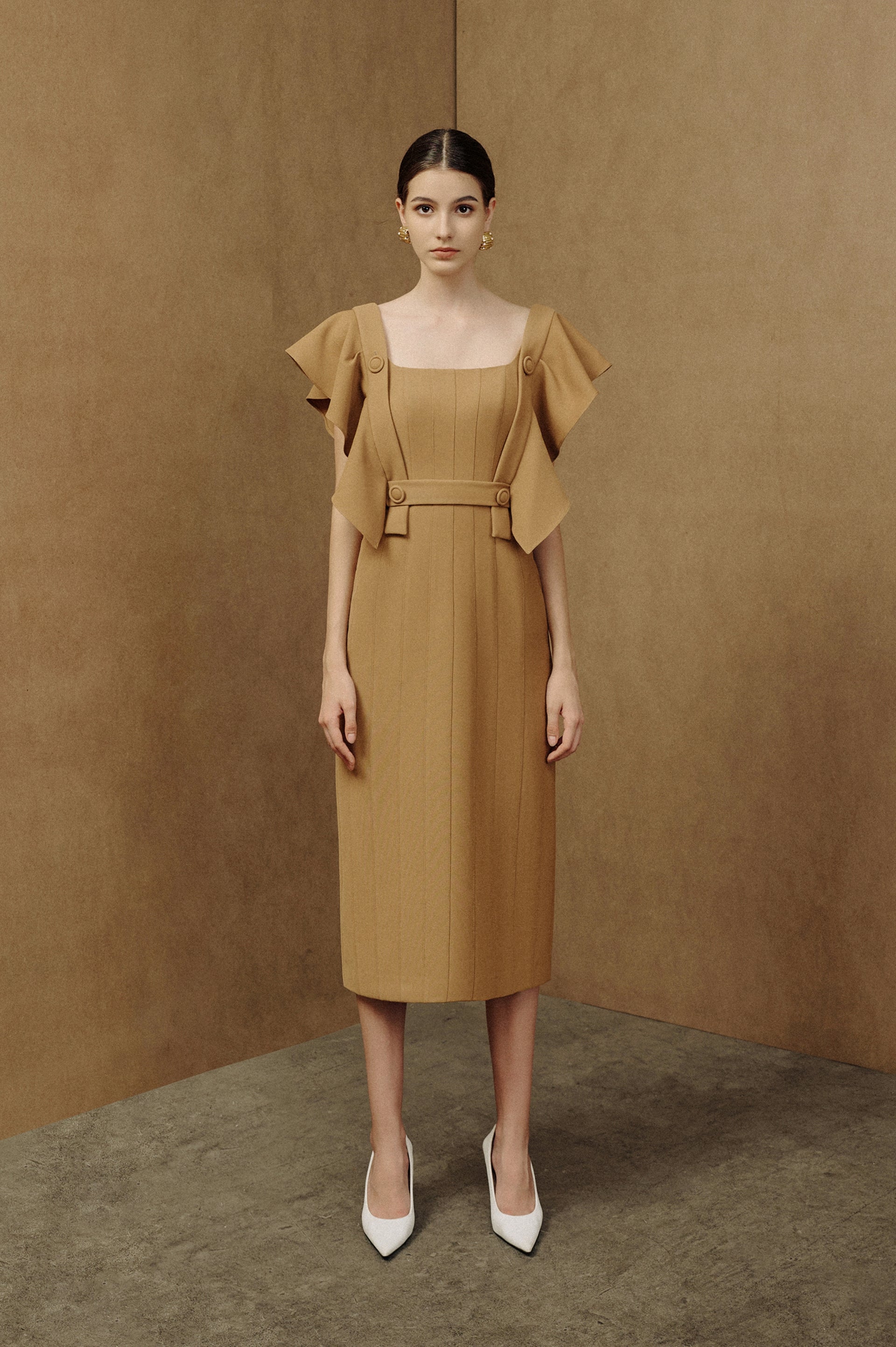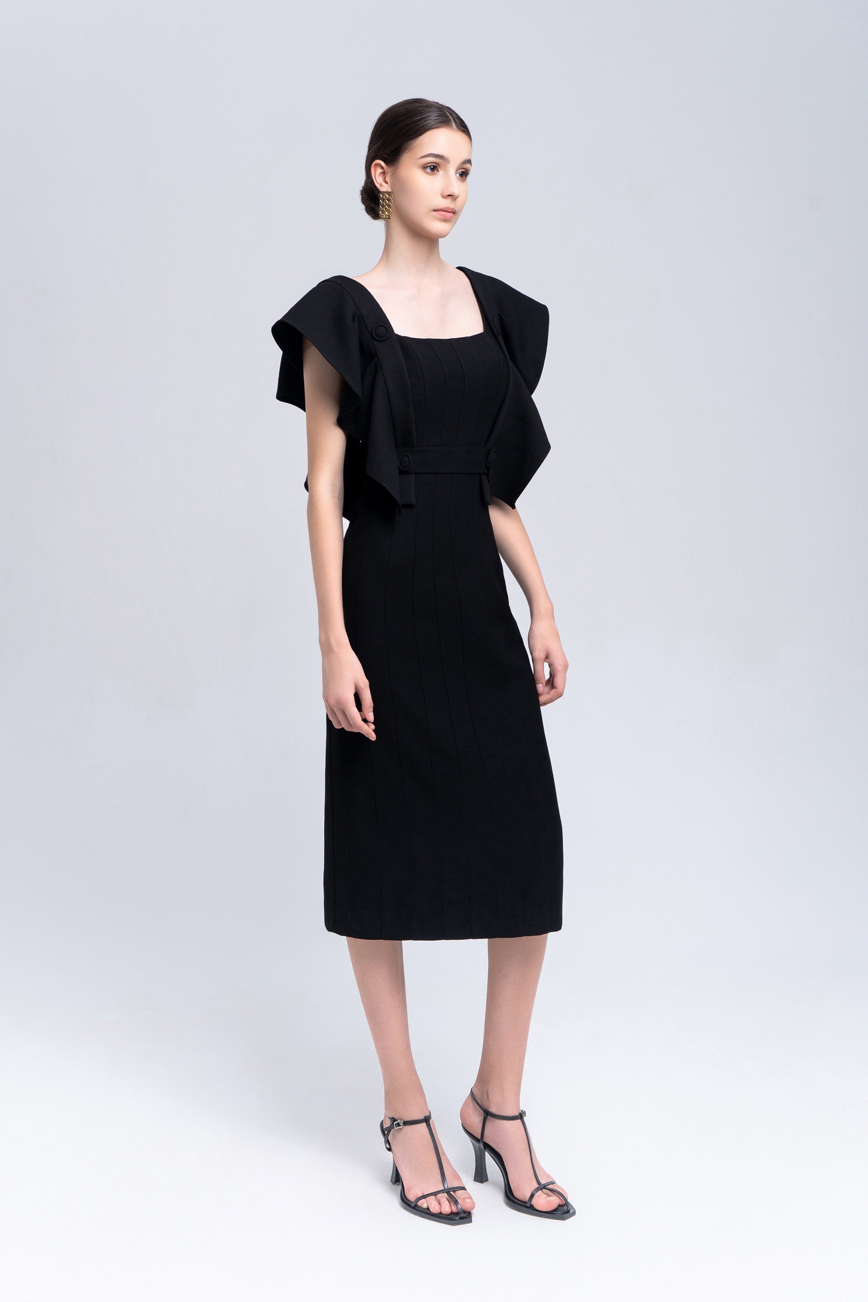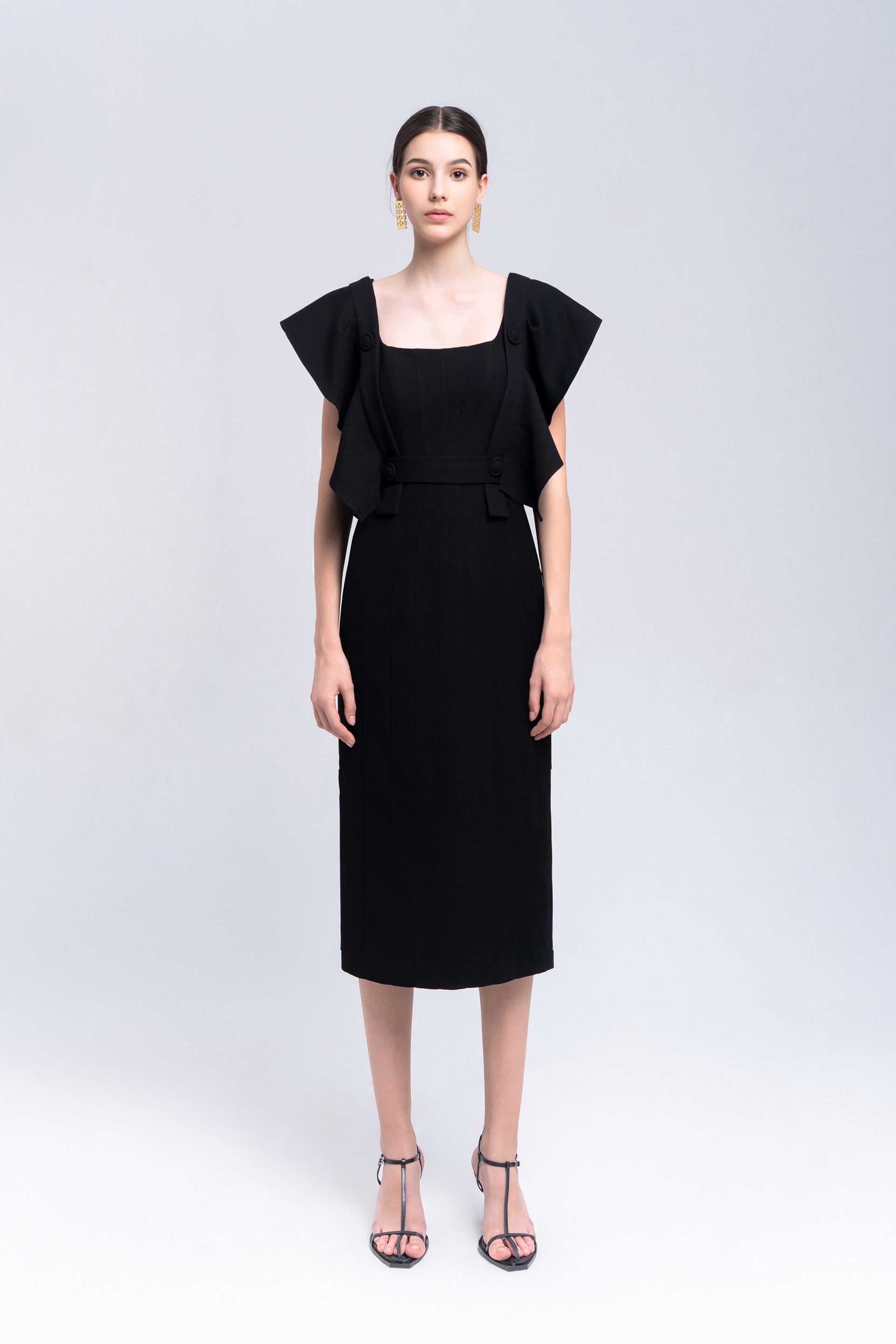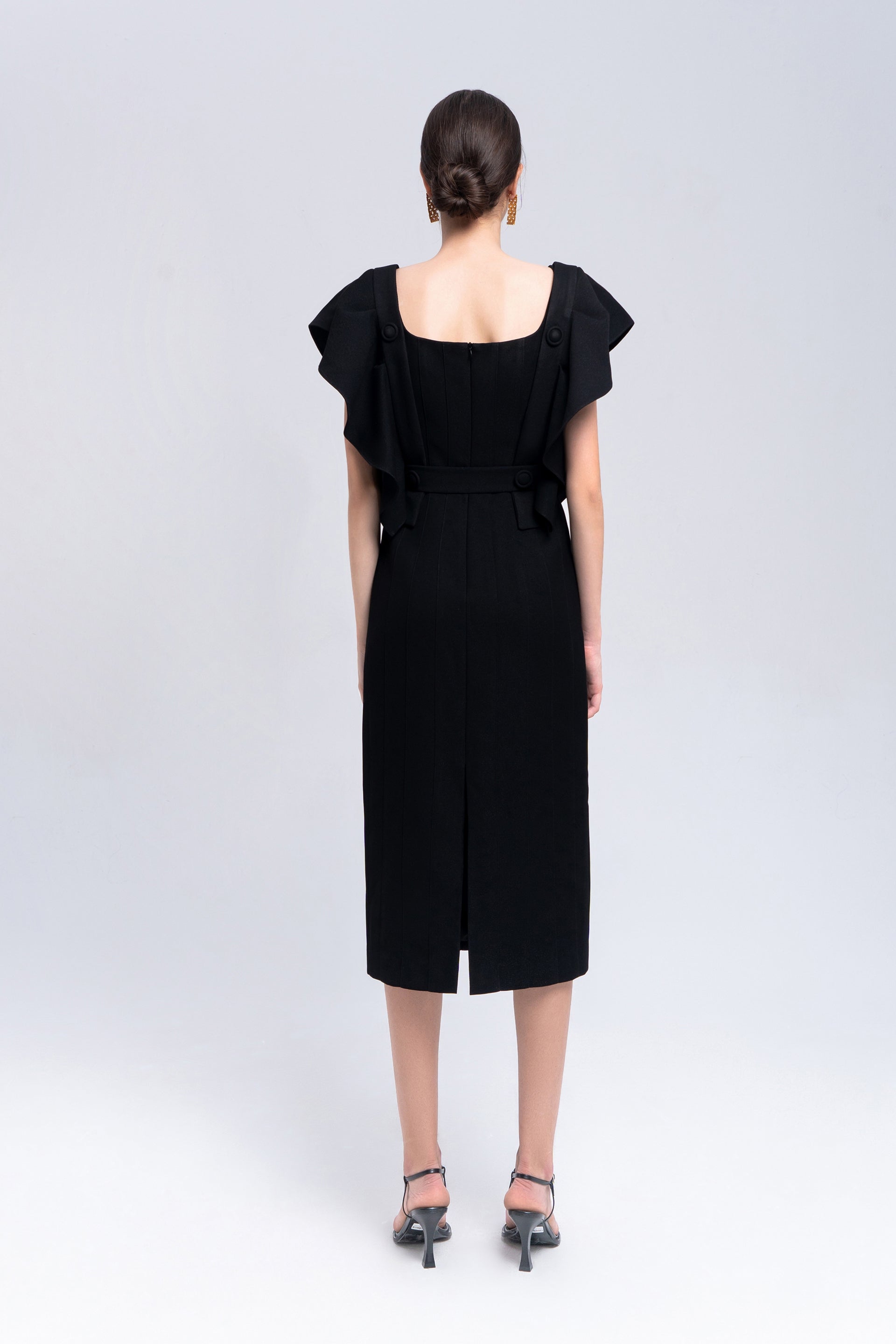 Sleek dress with square neckline, two straps, and versatile styling options. Lined with a back zipper, crafted from Diamond Crepe for a chic finish