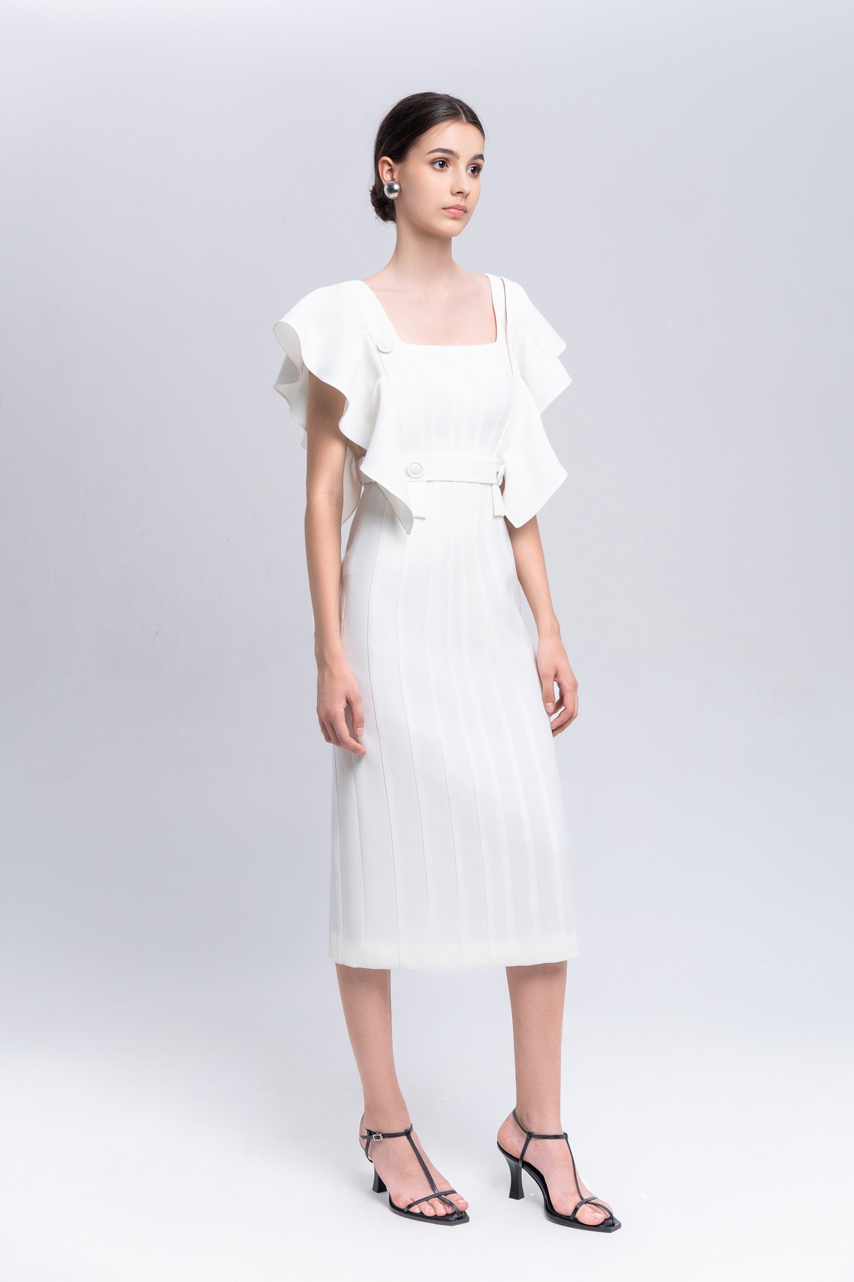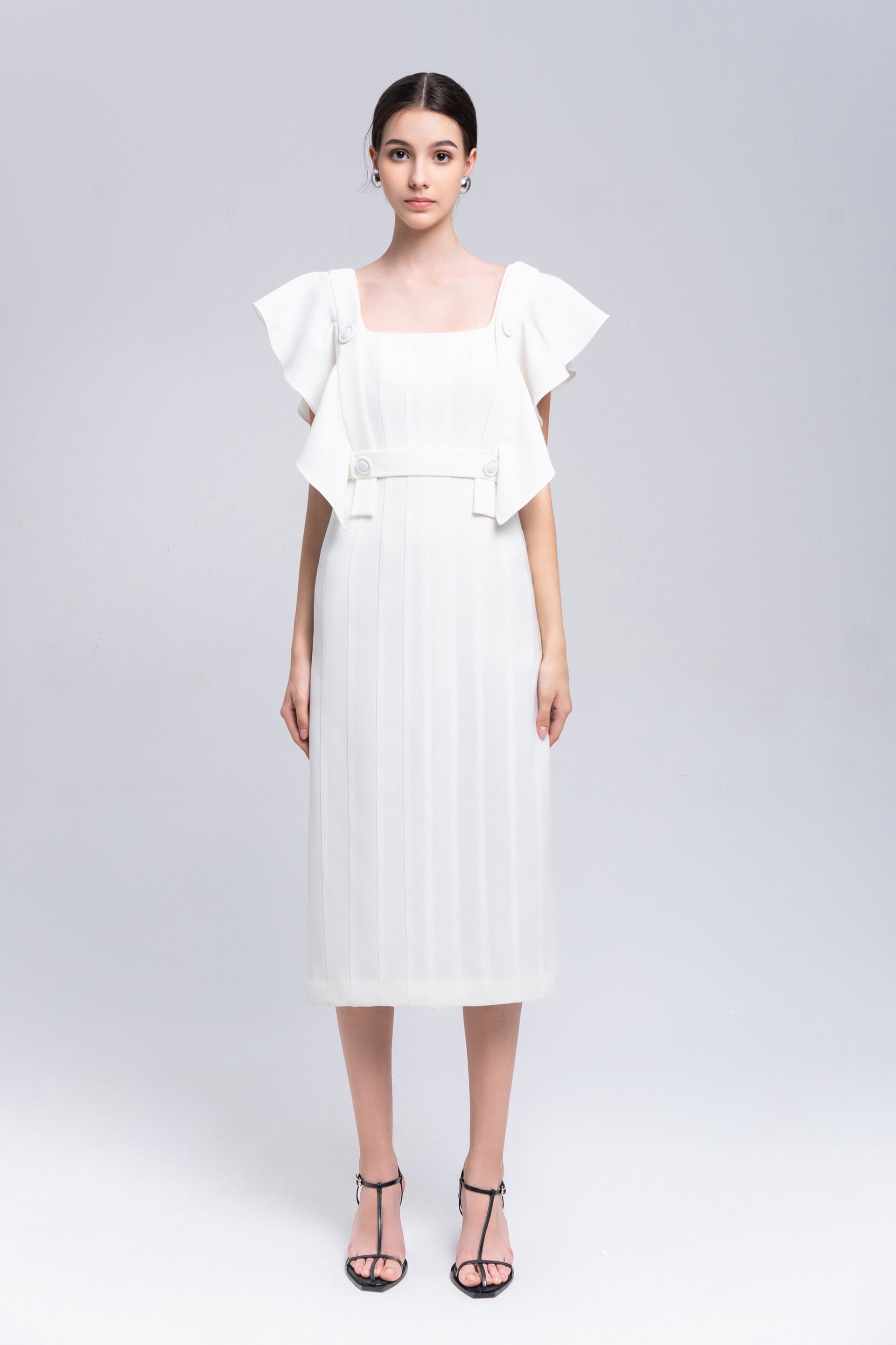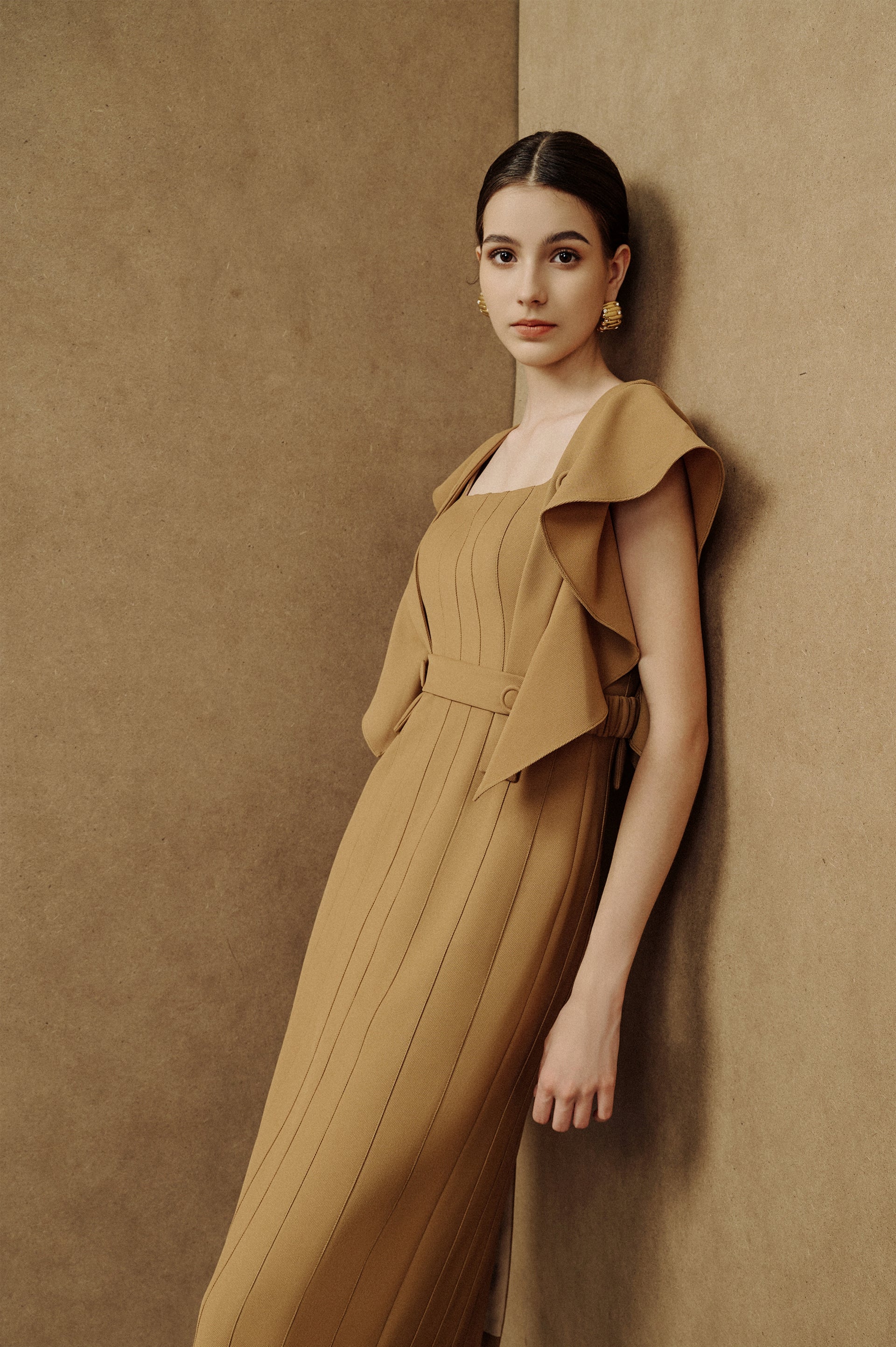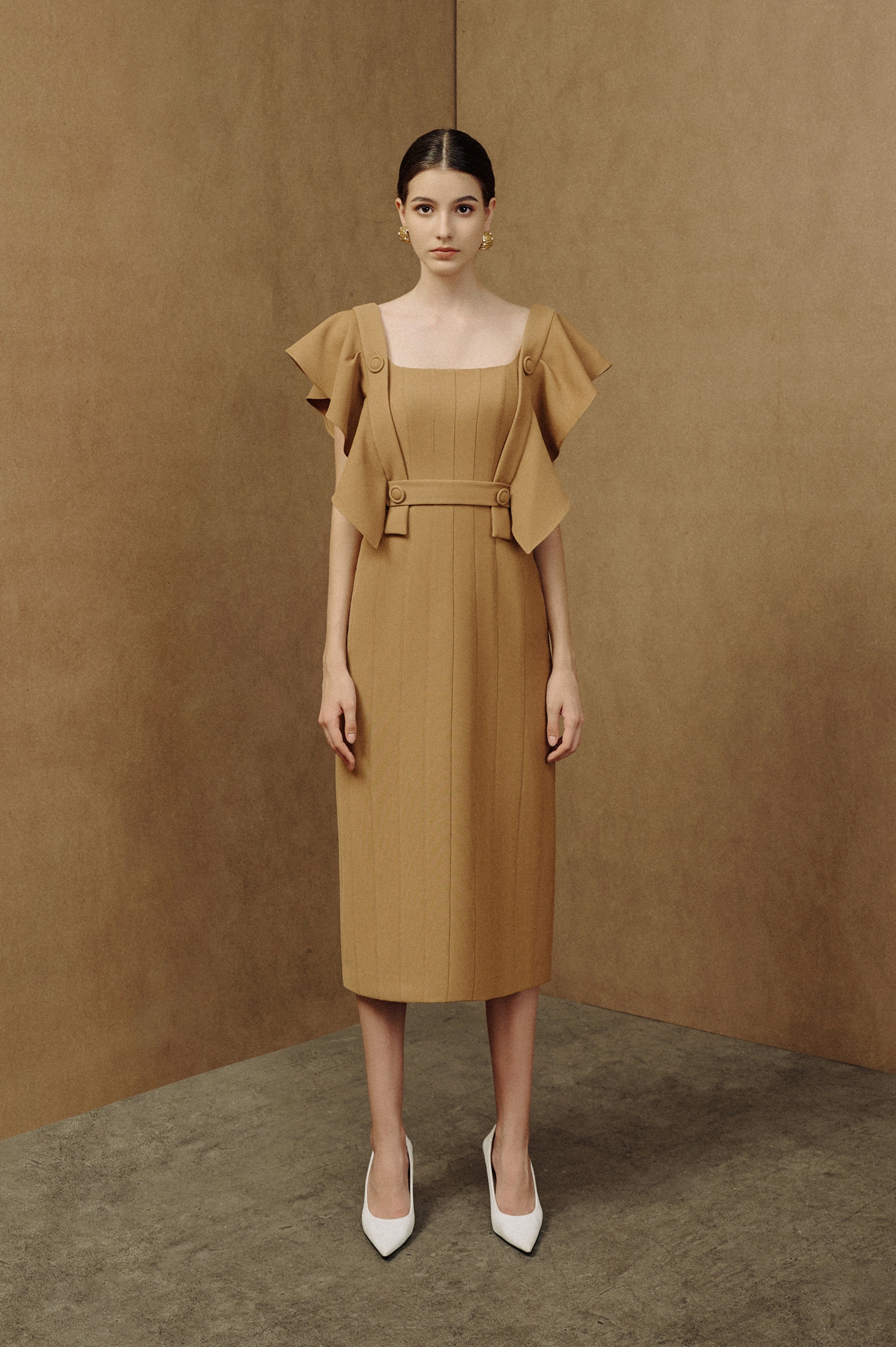 Sleek dress with square neckline, two straps, and versatile styling options. Lined with a back zipper, crafted from Diamond Crepe for a chic finish