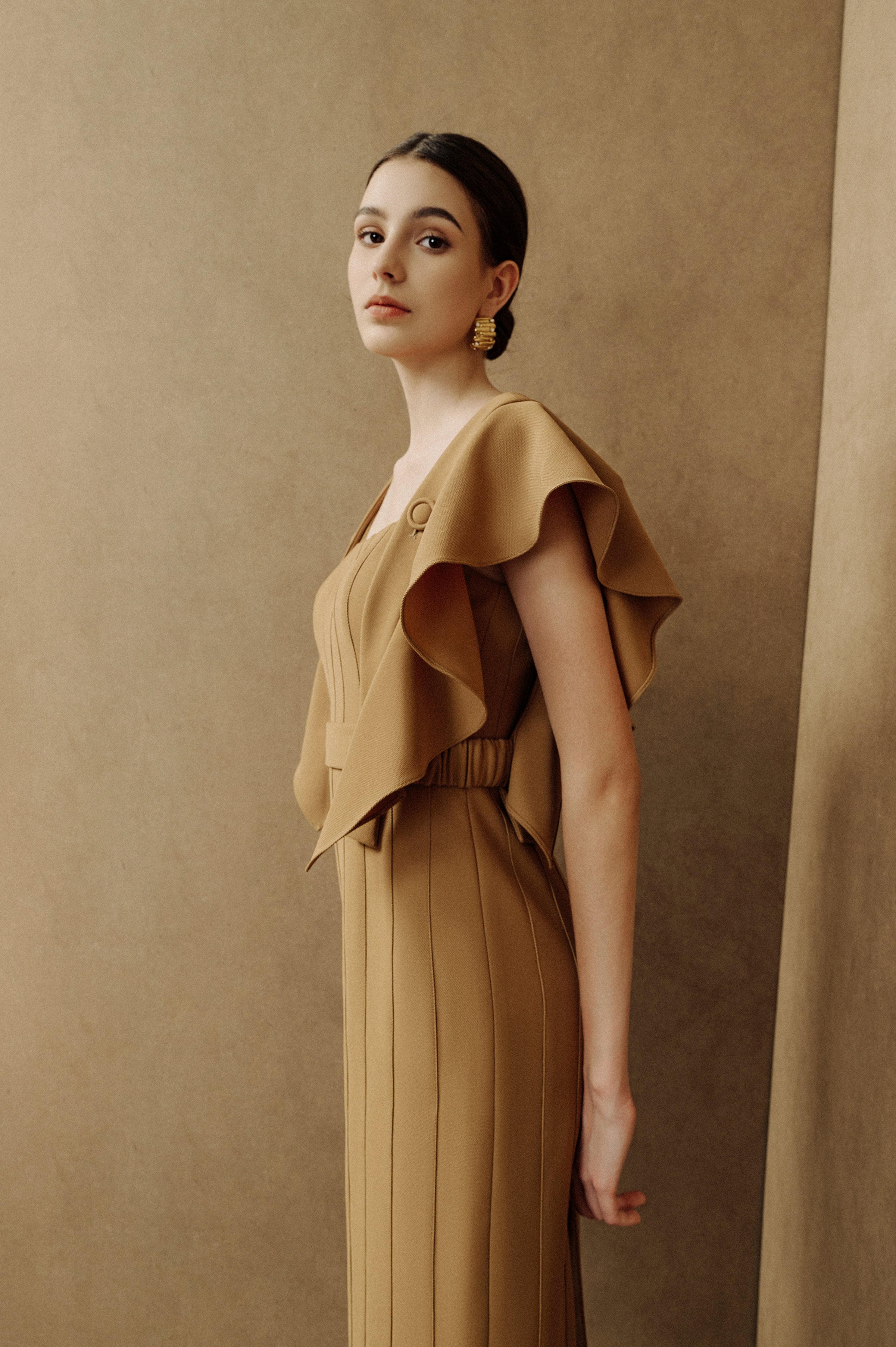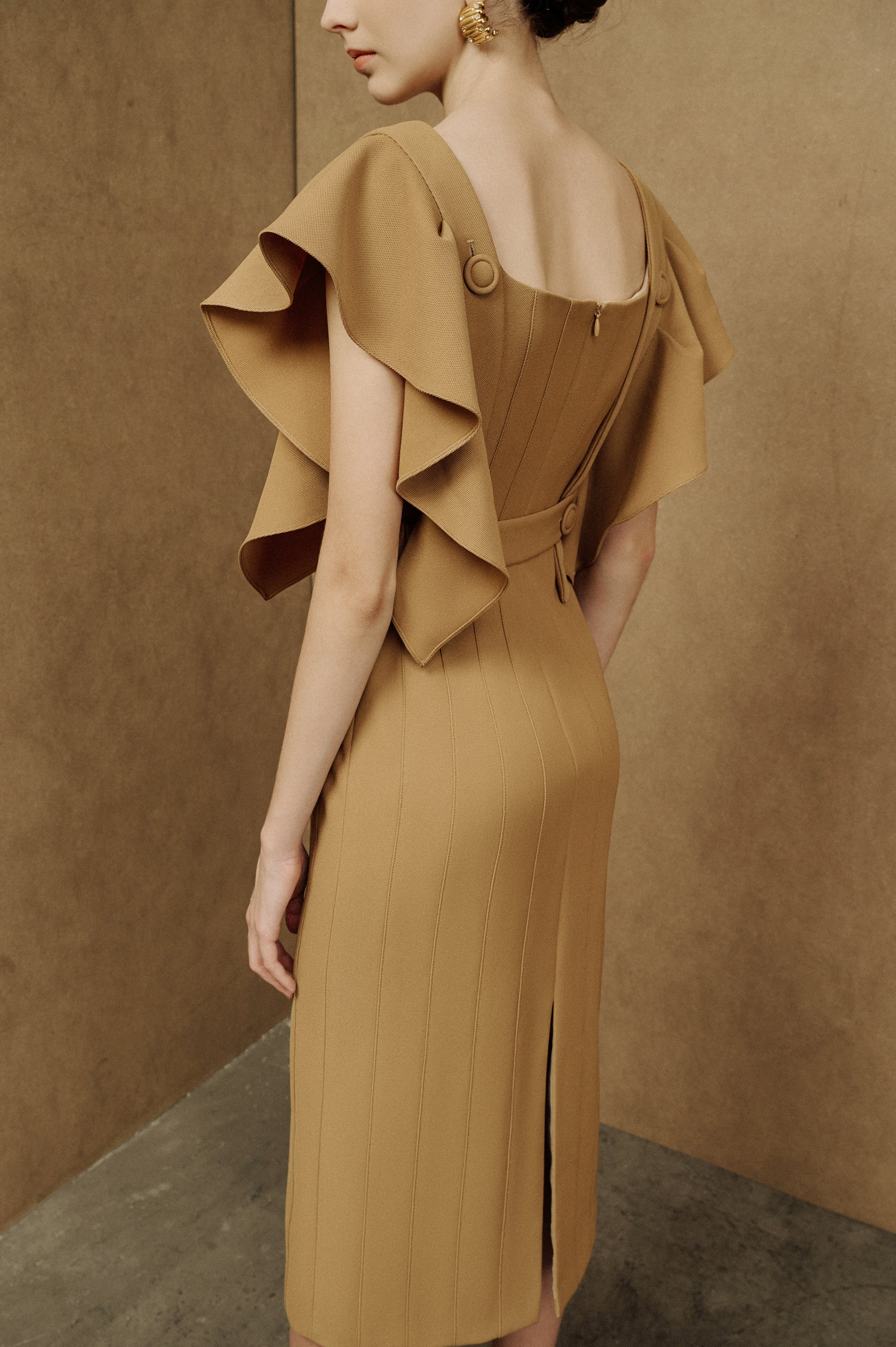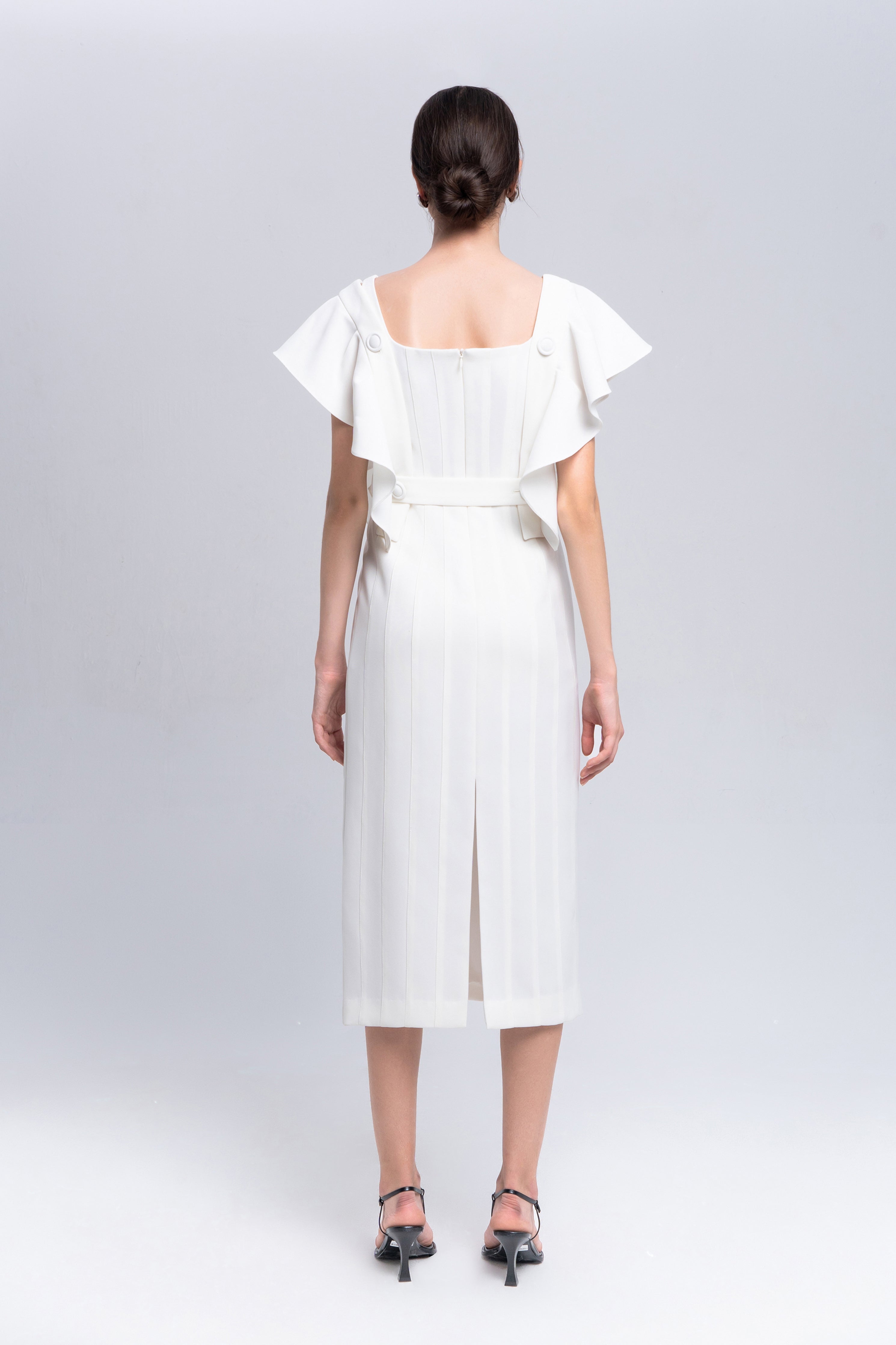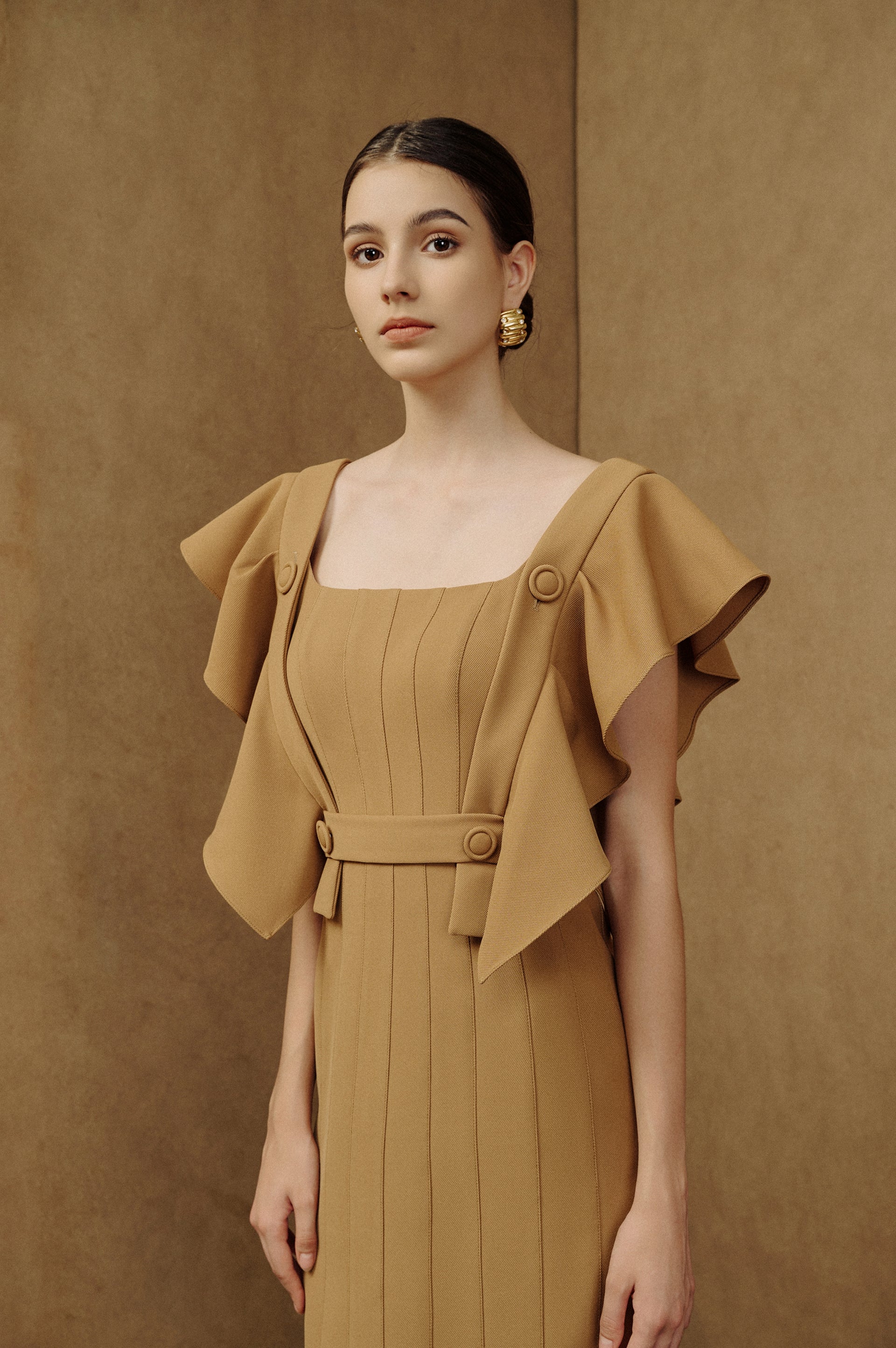 Sleek dress with square neckline, two straps, and versatile styling options. Lined with a back zipper, crafted from Diamond Crepe for a chic finish
