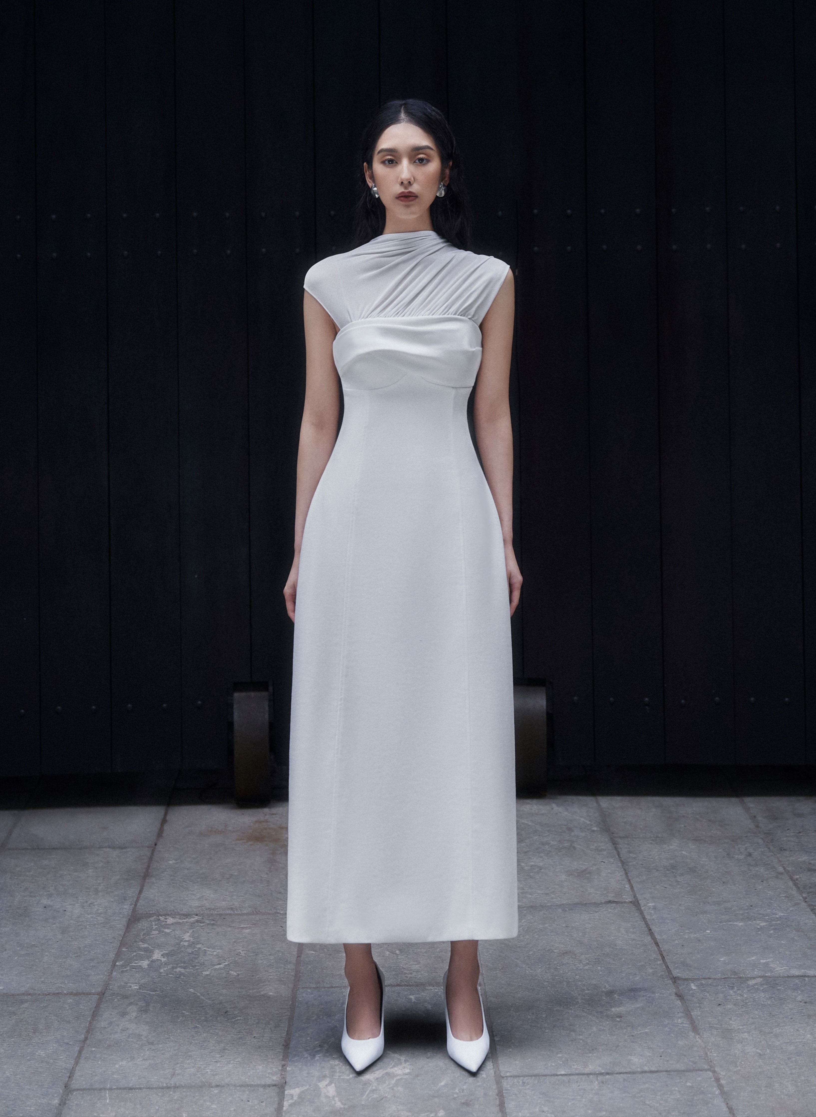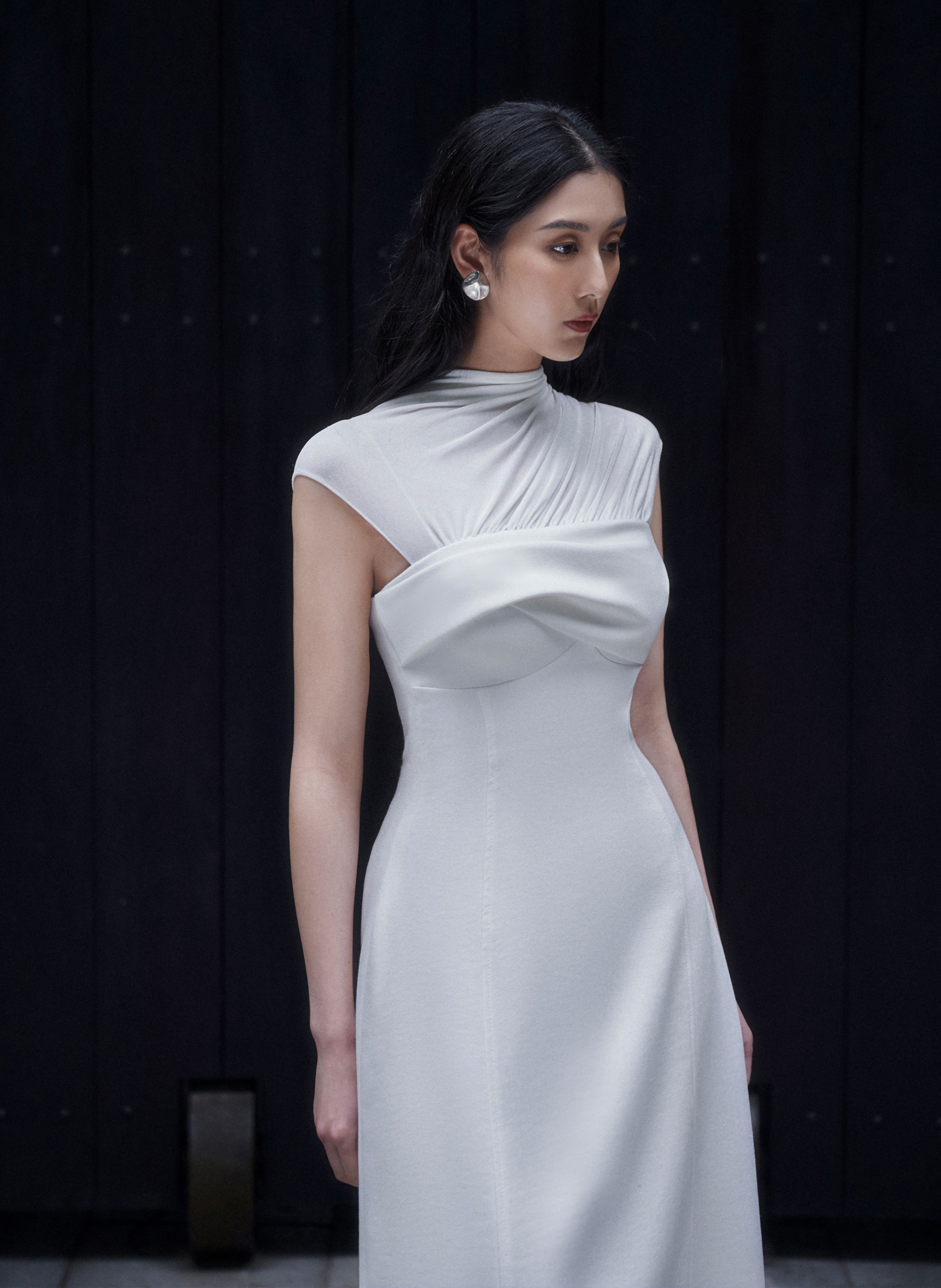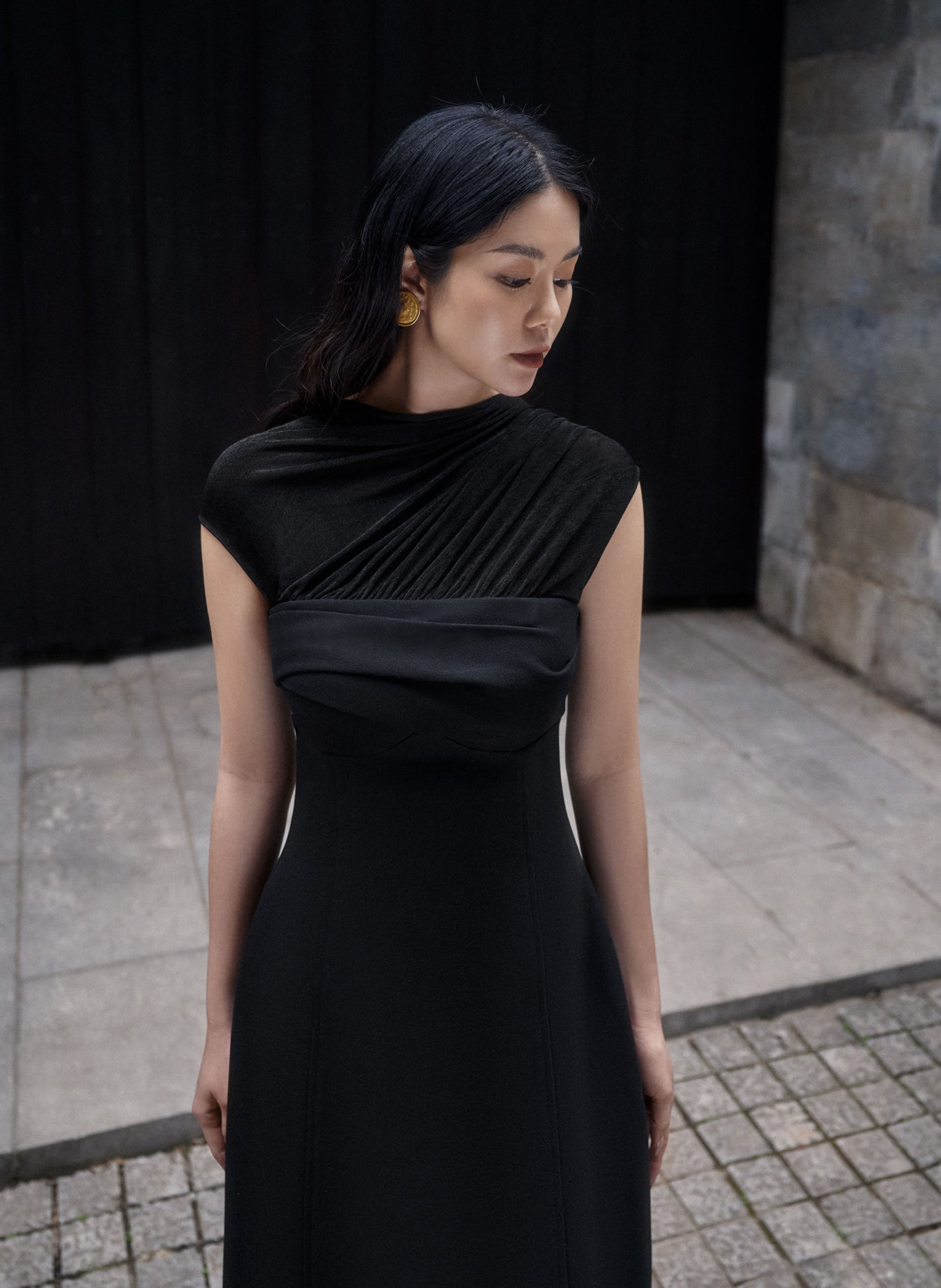 Introducing our chic sleeveless dress, featuring a tight waist and straight lower body design. The diamond knit fabric on the shoulder is elegantly draped around the front body, while the chest is intricately pleated in 3D. Complete with lining, cup and back zipper, this versatile dress is both fashionable and functional. Shop now for the ultimate combination of style and comfort! Β  Β