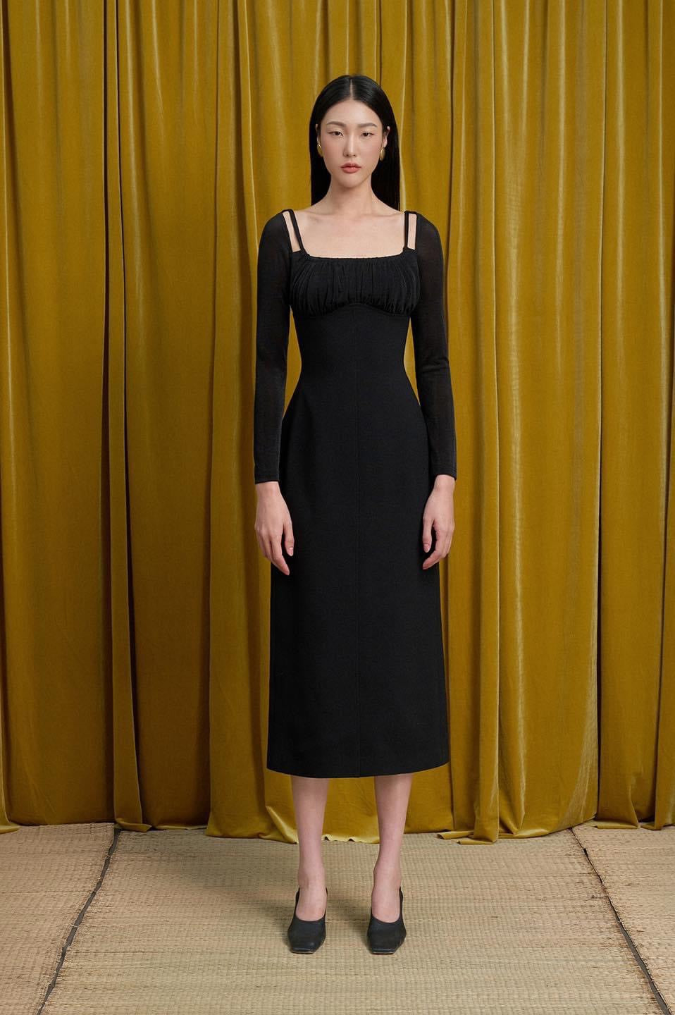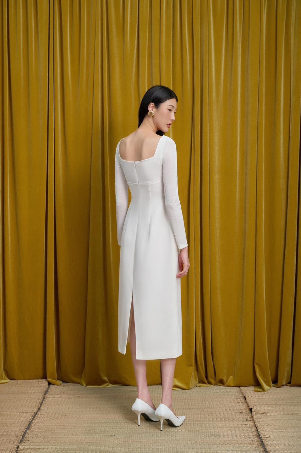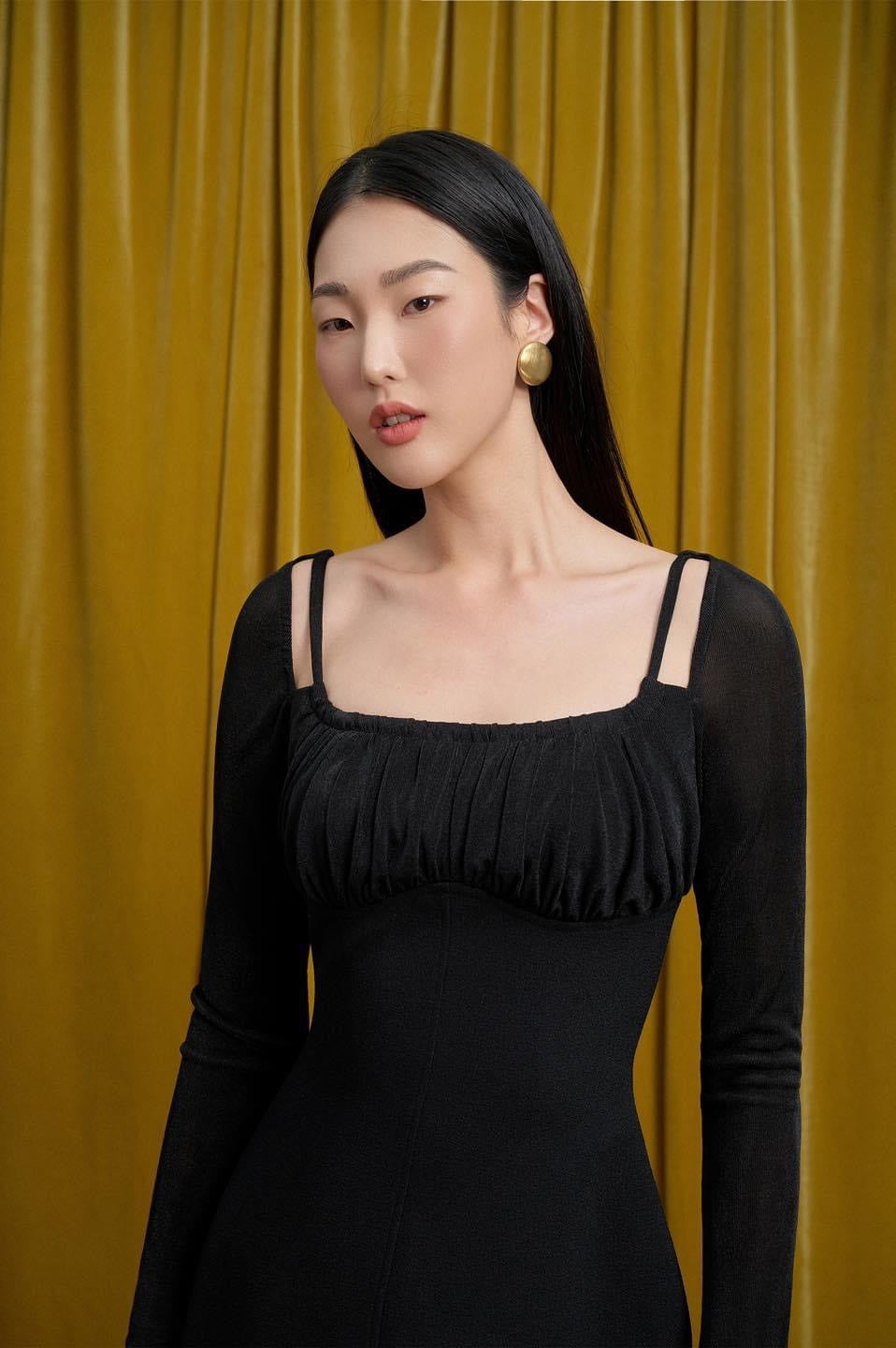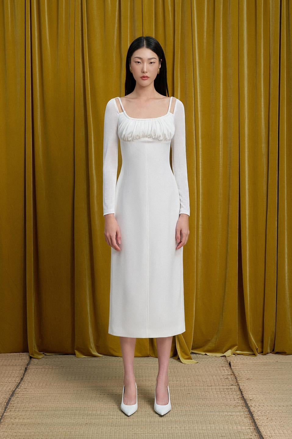 Get ready to turn heads with our elegant A-line long sleeve dress featuring a subtle high-low hem and a pleated chest design that adds a unique touch. With a flattering cupped neckline and delicate shoulder straps, this dress is sure to make you feel confident and stylish. Made with a comfortable lining and a convenient back zipper, it's perfect for any formal occasion. Shop now and elevate your wardrobe with this stunning piece. Β  Β