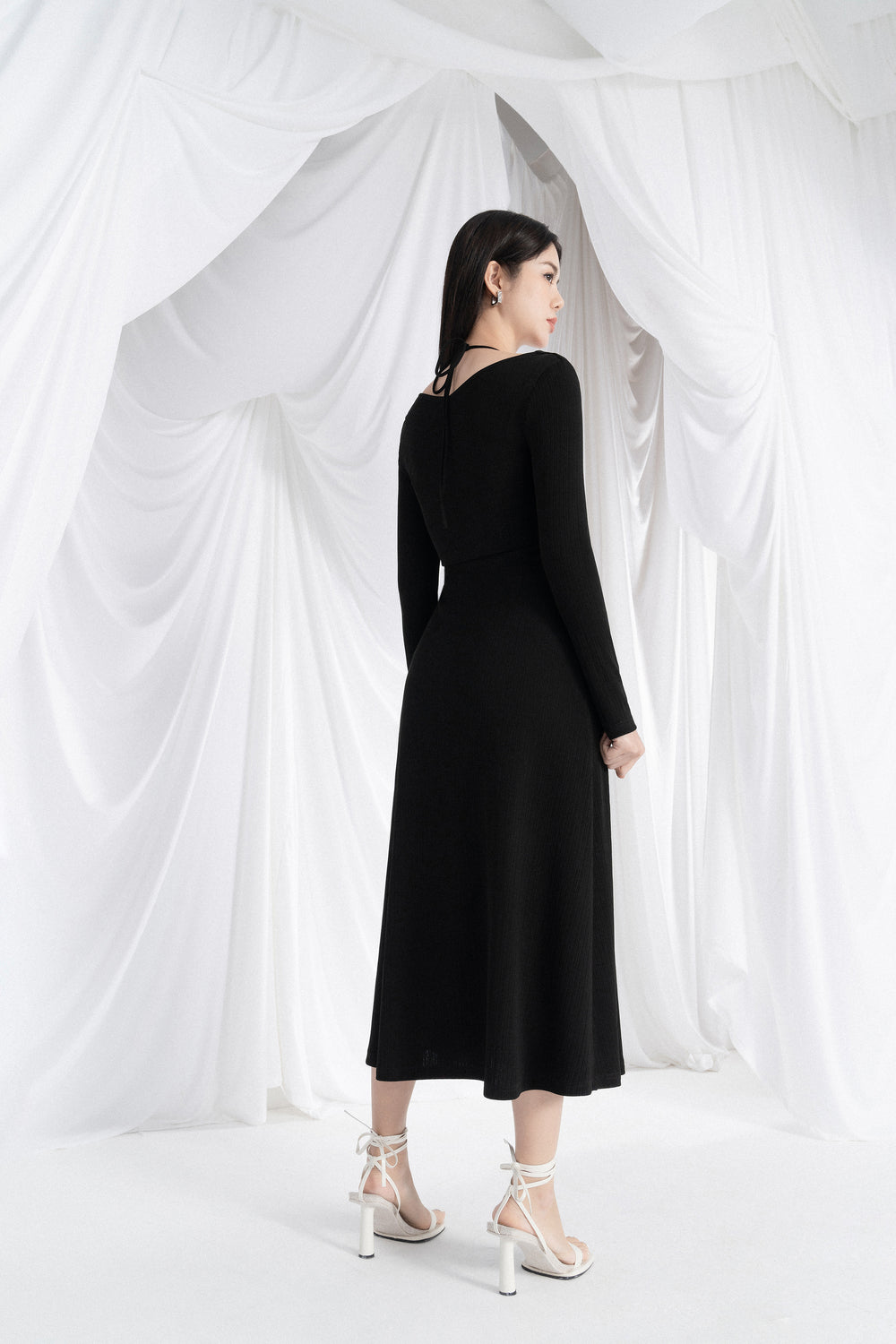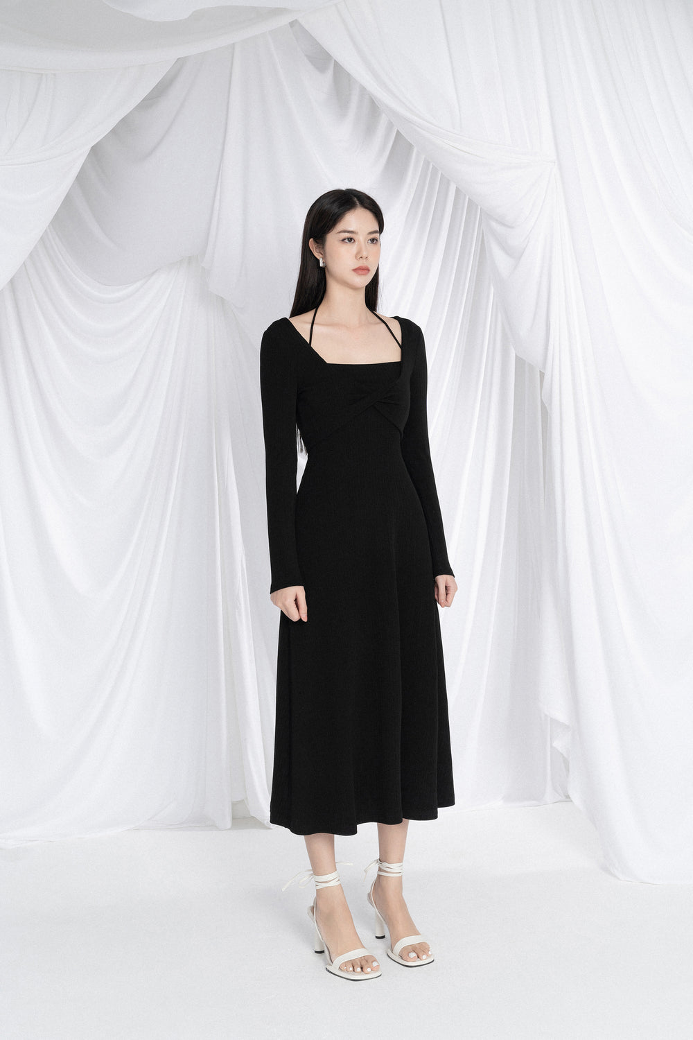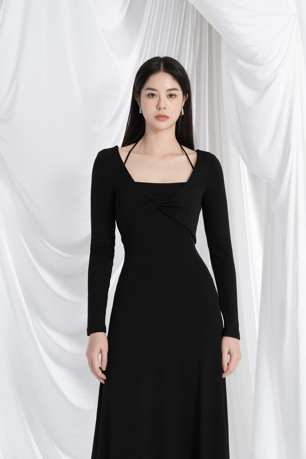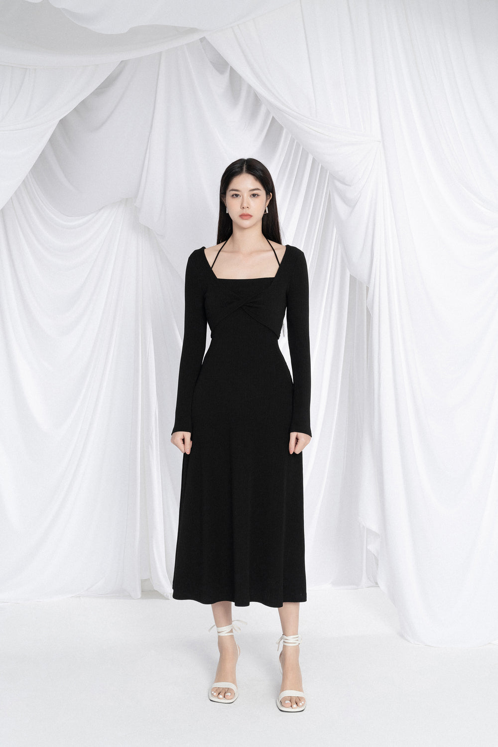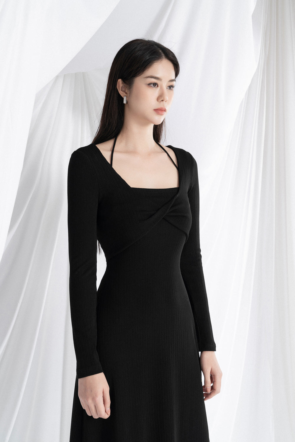 Double-layered sweater and dress combo with twisted pleats and A-line silhouette. Versatile two-in-one design for a trendy look. Note:*The product is ready to ship, shipping time varies from 5-15 days.**The product can be customized based on the measurement of 3 circumferences (bust, waist, hip) with an additional cost of 10-25%, and the customization time takes 1-3 days. Please contact us via email support@eegenstudio.com or Eegen fanpage for further assistance. Product details Double-layered sweater. The outer layer is a long-sleeved cropped sweater with twisted pleats in front of the chest. The inner layer is a two-strap dress that hugs the waist...