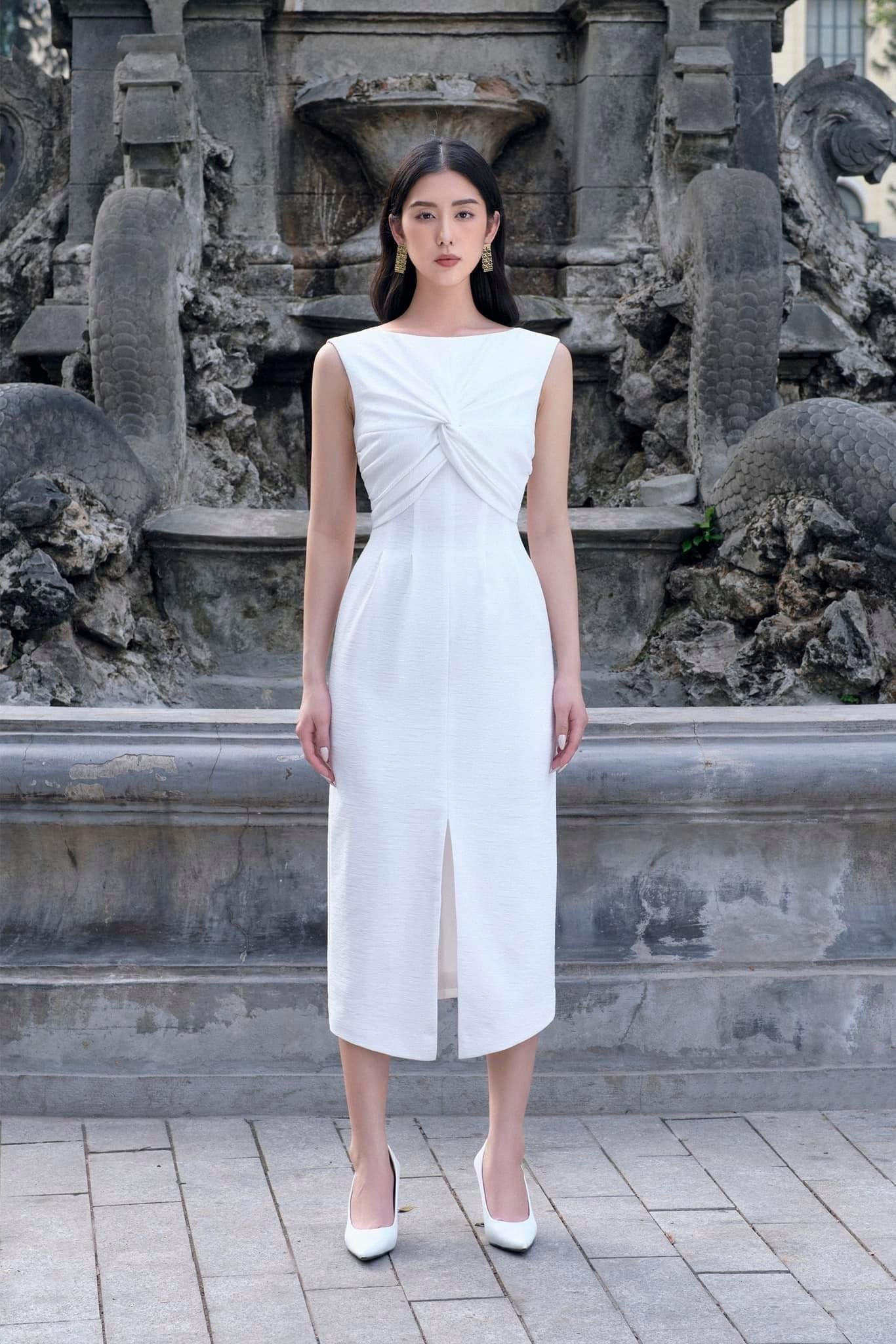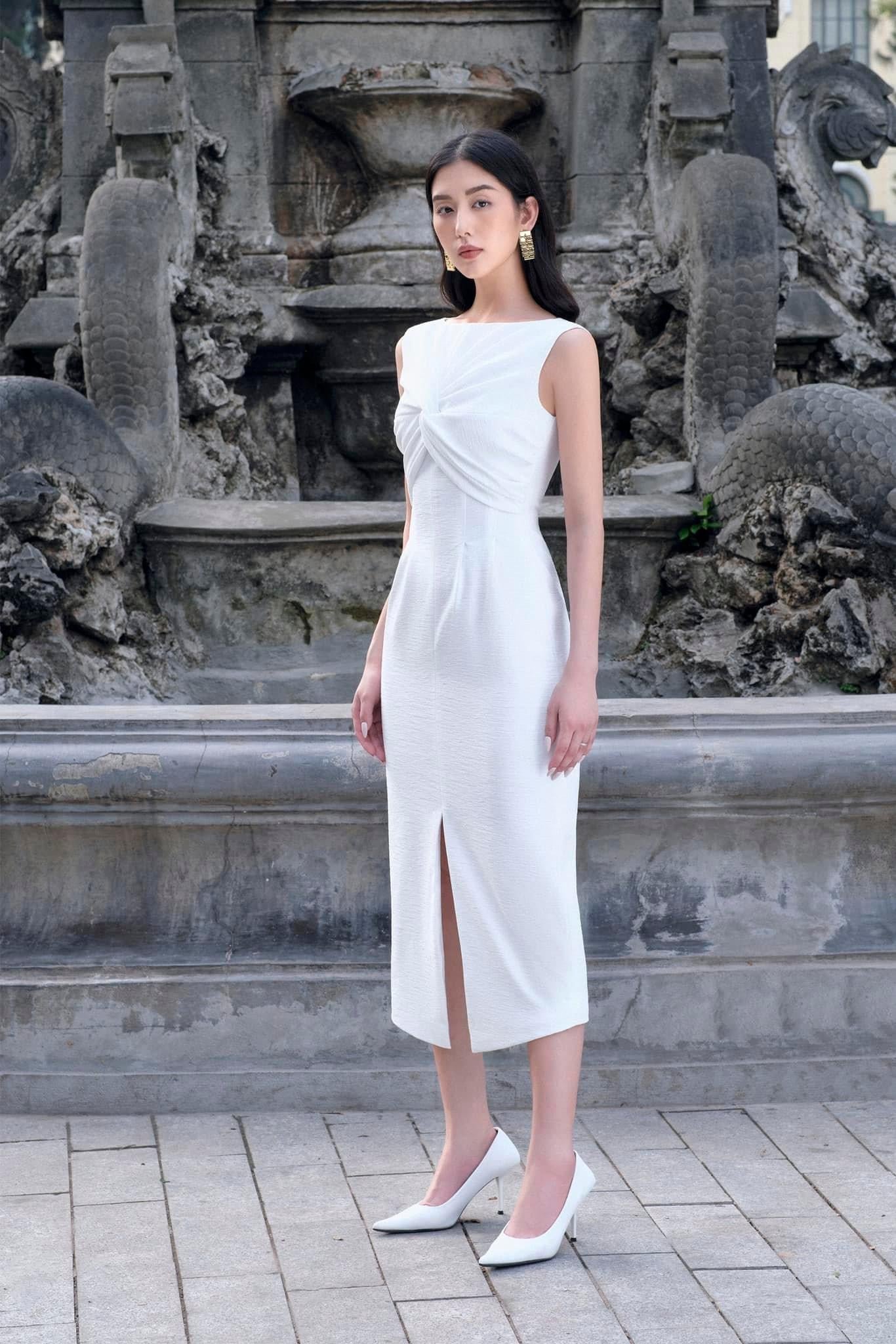 Β  Note:*The product is ready to ship, shipping time varies from 5-15 days.**The product can be customized based on the measurement of 3 circumferences (bust, waist, hip) with an additional cost of 10-25%, and the customization time takes 1-3 days. Please contact us via emailΒ support@eegenstudio.comΒ or Eegen fanpage for further assistance. Product details Sleeveless dress with twisted chest, waist-hugging shape and a front slit. Dress with lining and back zipperMaterial: 3D wave crepe Size & Fit - Model wears size: S- Model measurement: <165cm XS S M L XL XXL Shoulder 35 36 37 38 39 40 Bust 80 84 88...
