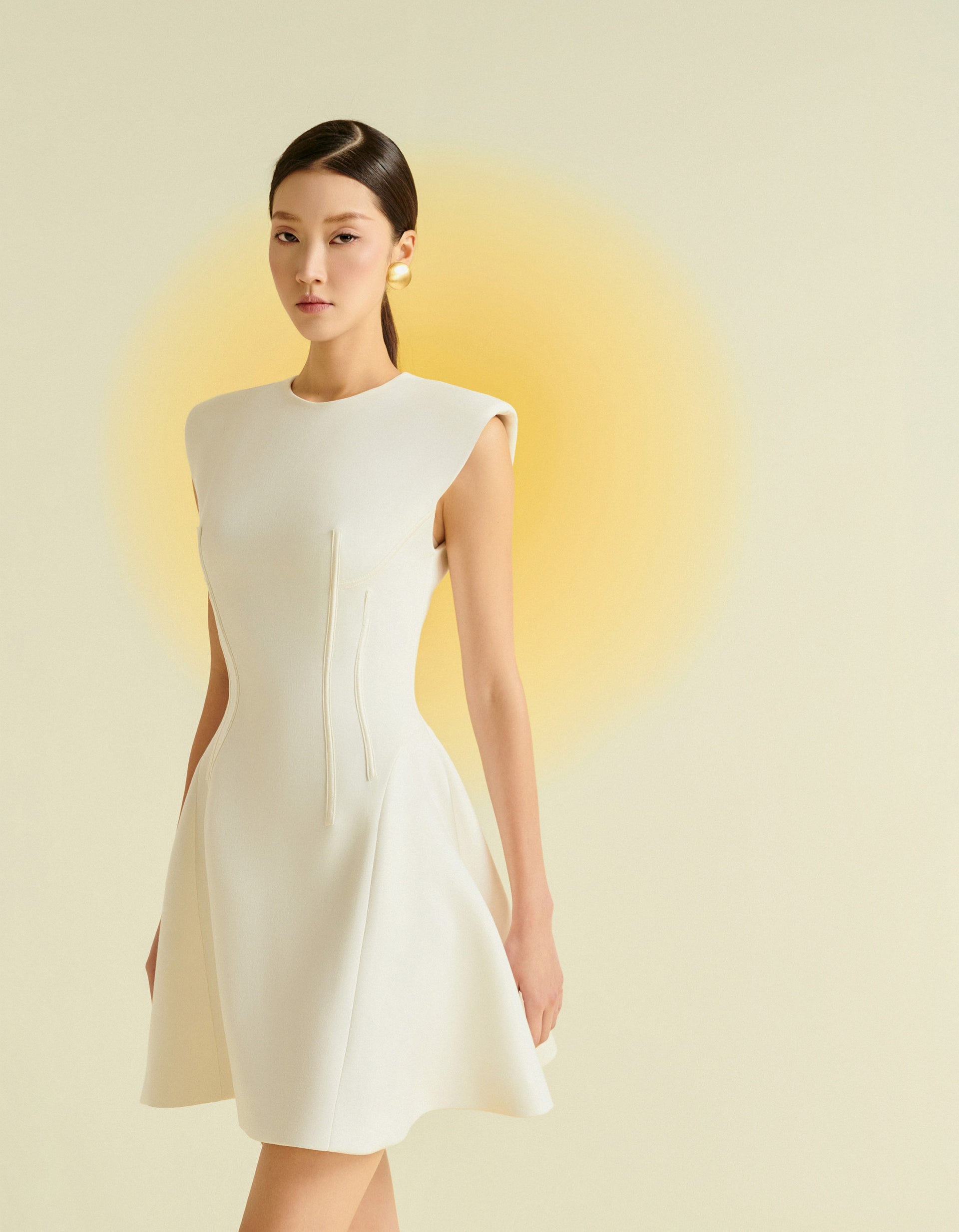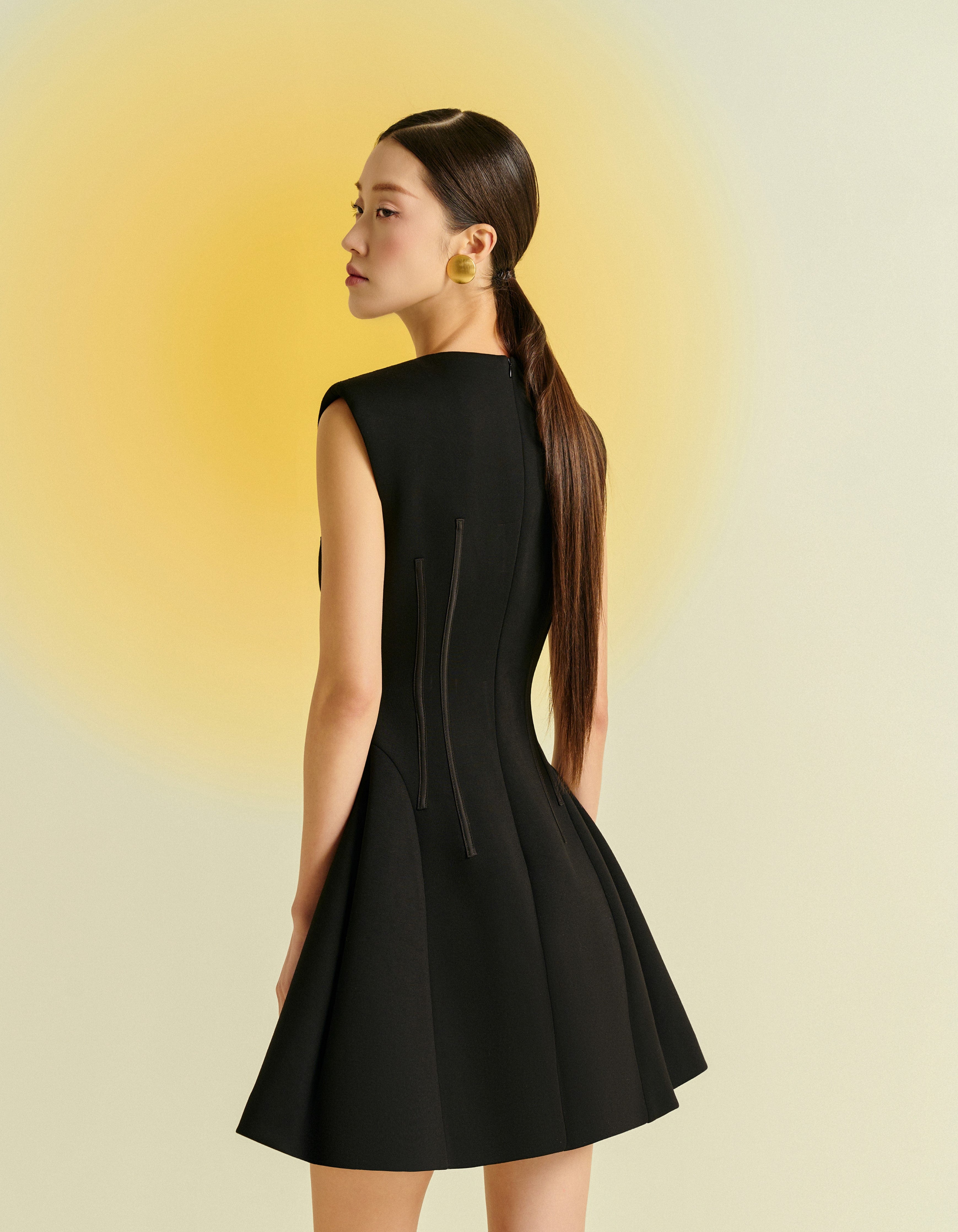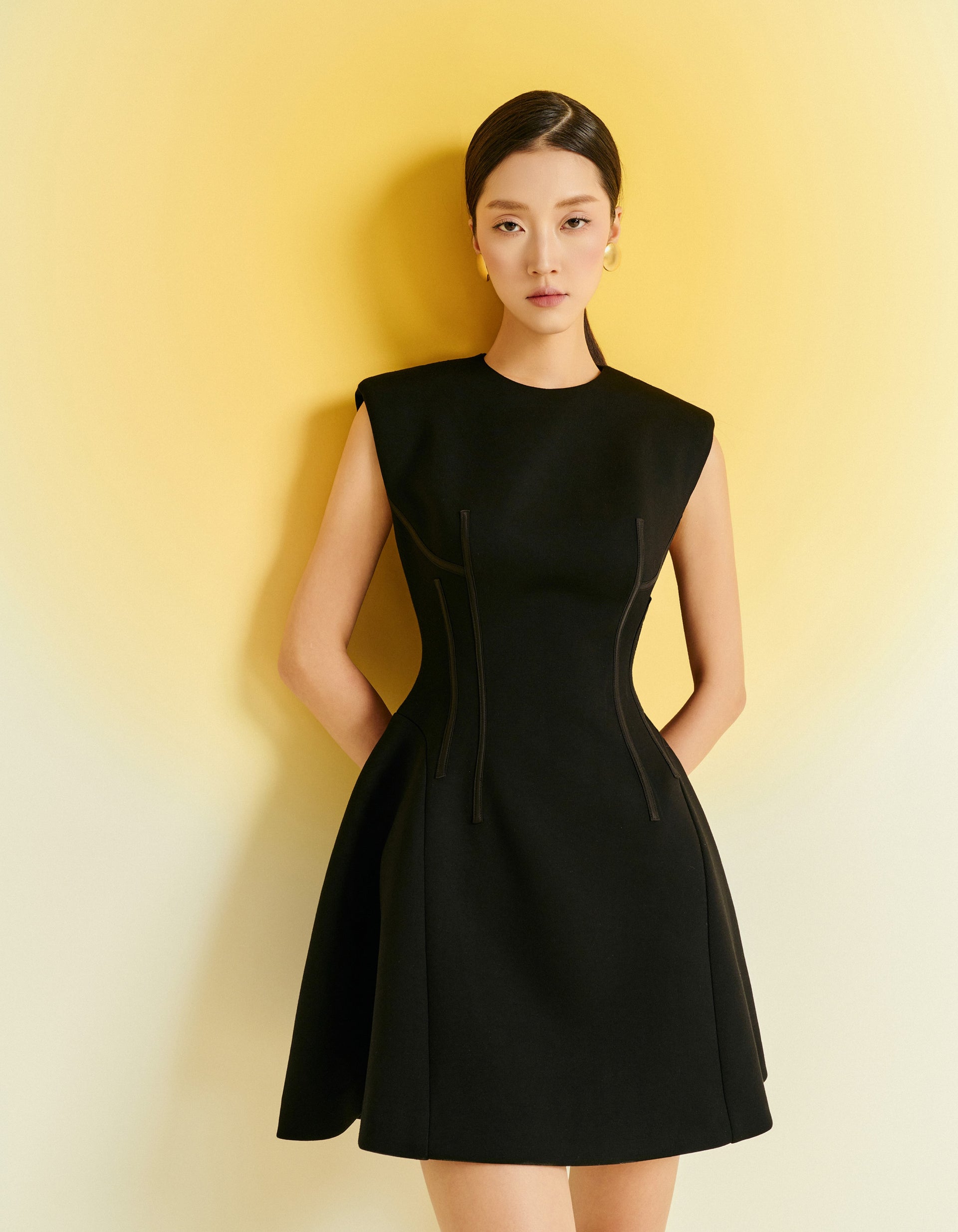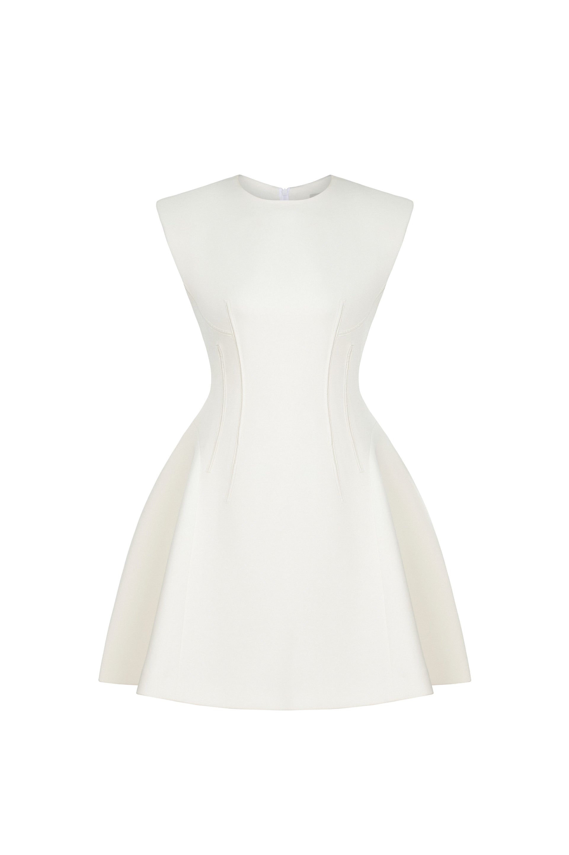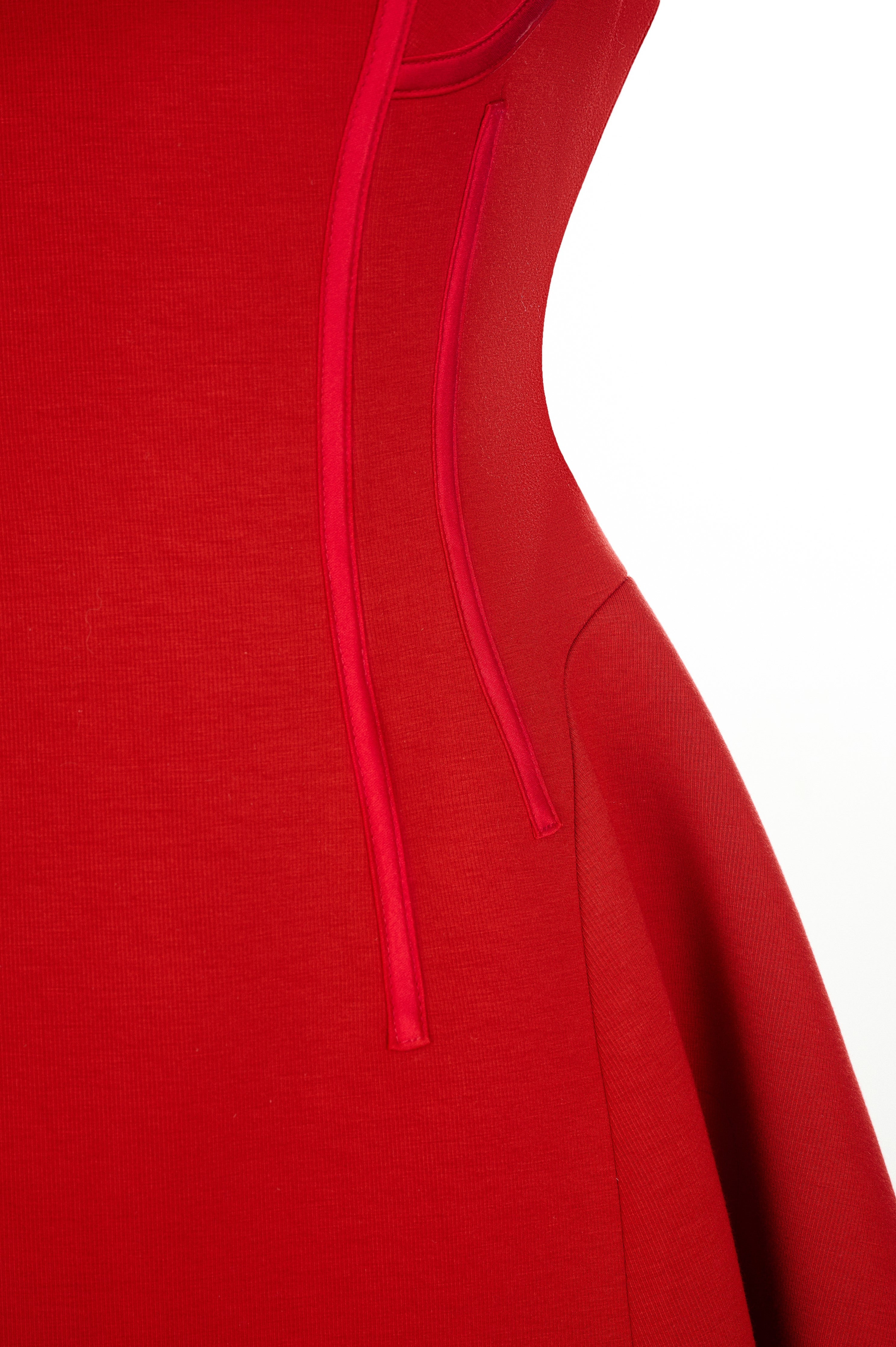 This sleeveless dress features a round neckline and a short, slightly flared hem for a youthful and feminine look. Crafted from premium stretch Umi fabric, it offers both comfort and style. Available in three colors: red, white, and black, this dress is perfect for modern, stylish women