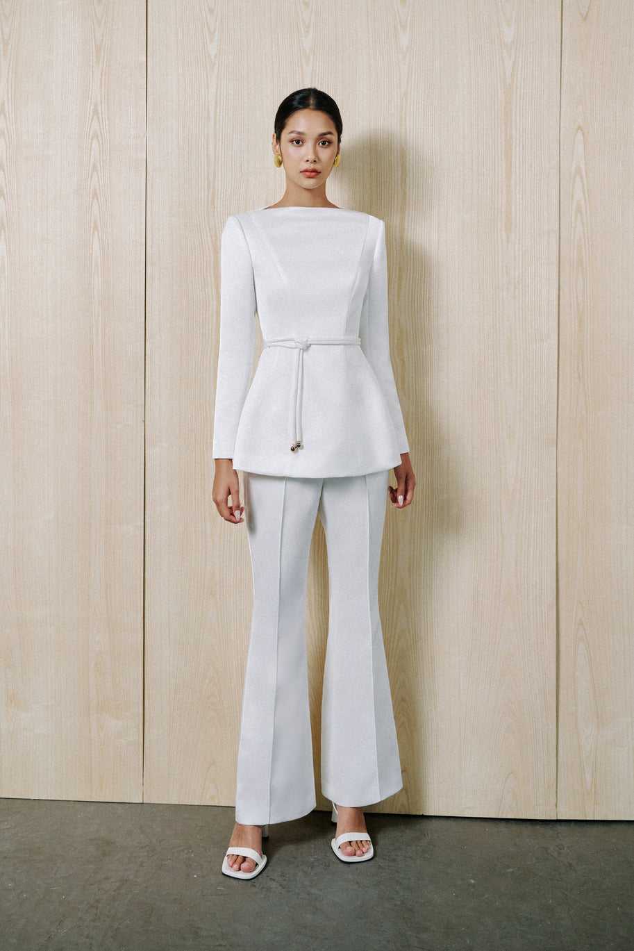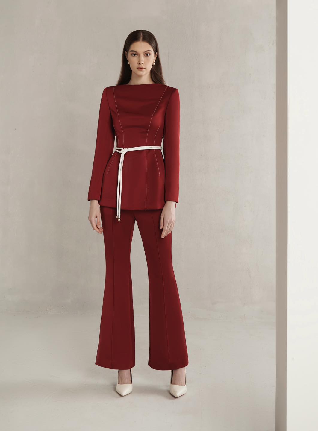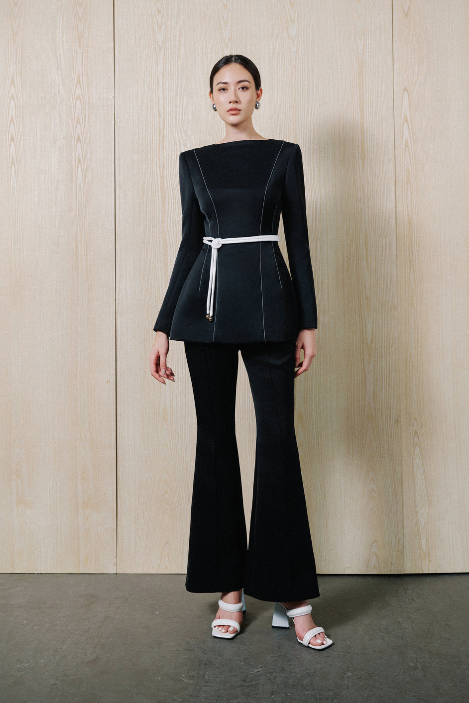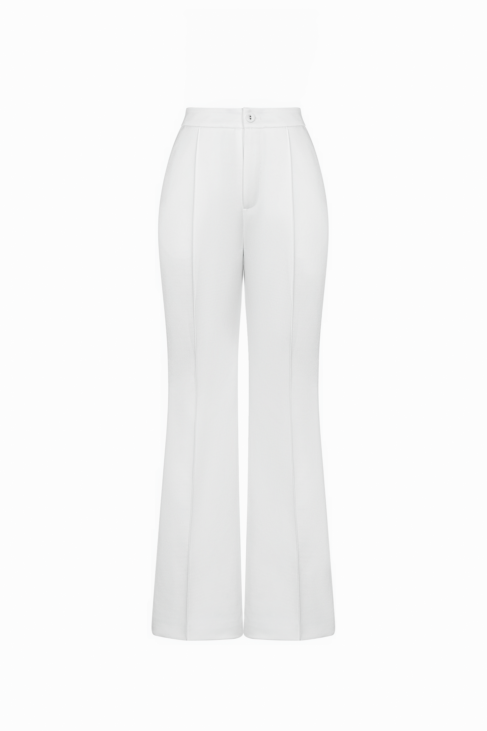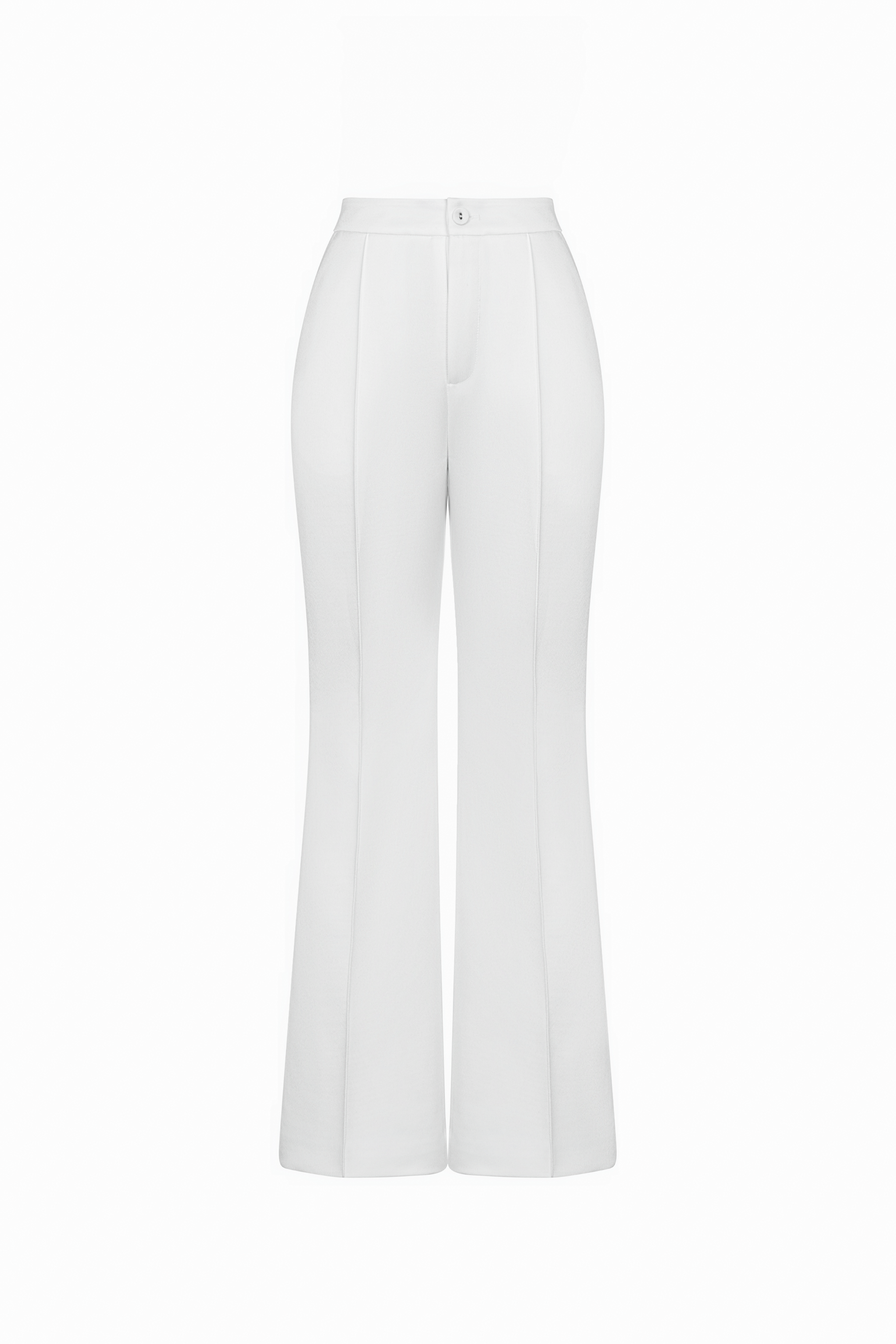 Flared pants with minimalist high waist and 2 side pockets, lined with a back zipper Β