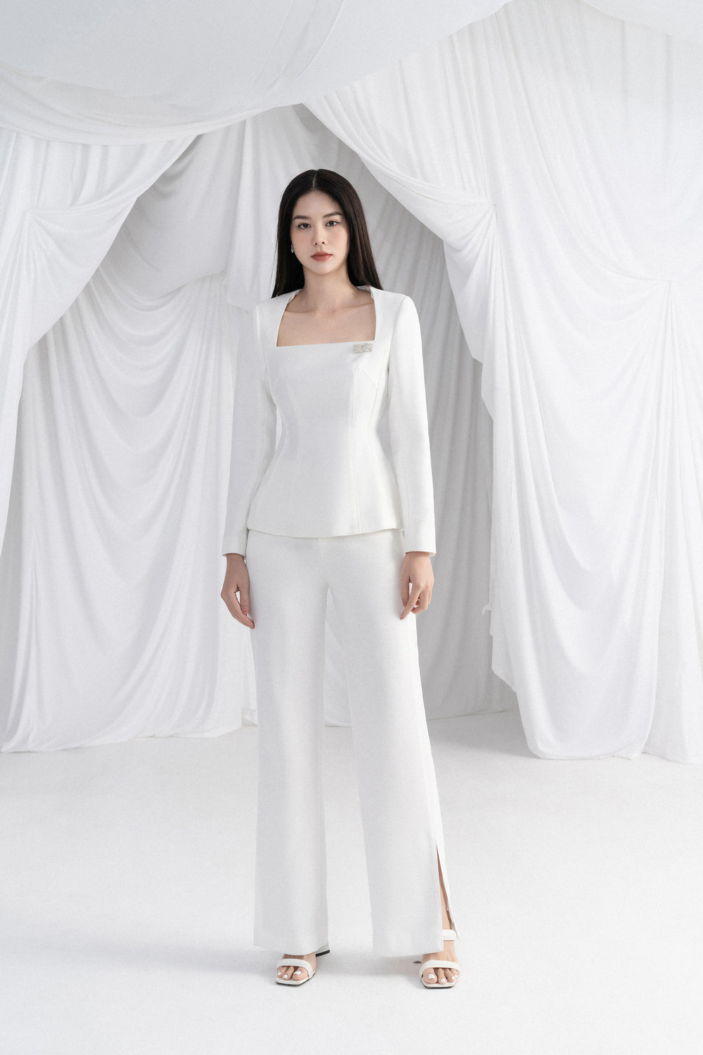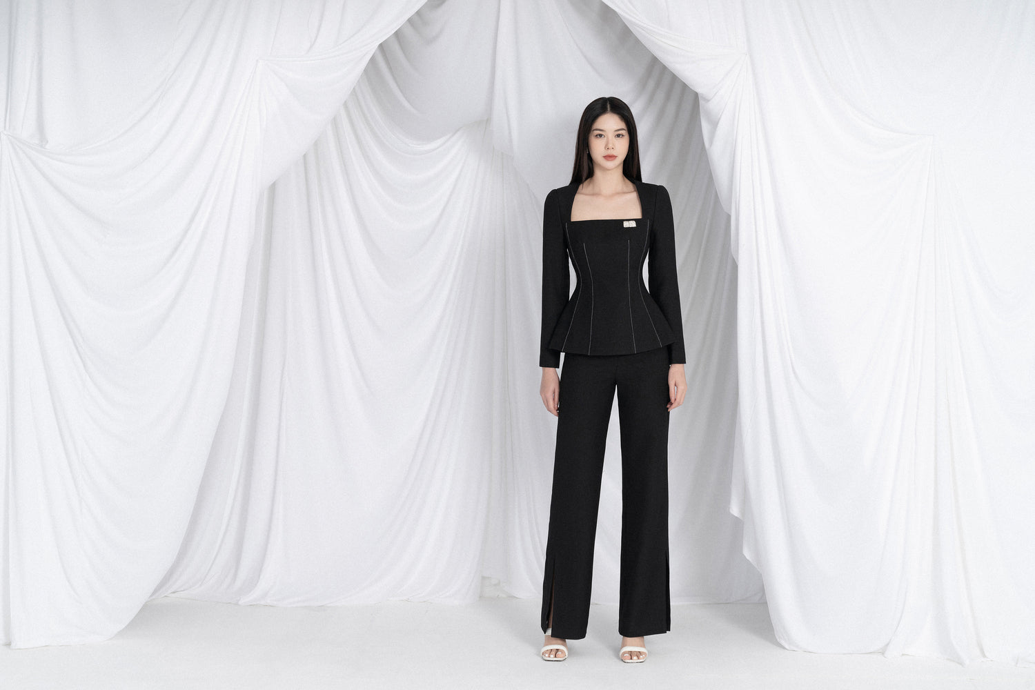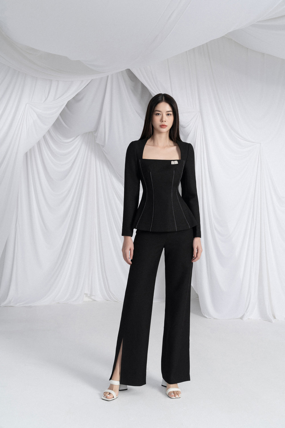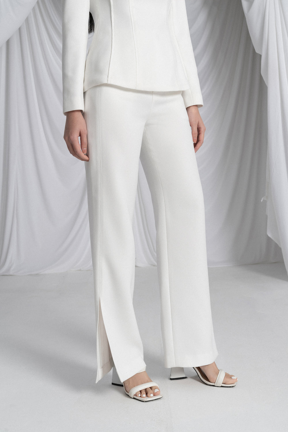 These high waisted pants feature a wide-leg design and two side pockets for added convenience. The front panel is crafted with decorative stitching and a slit at the hemline for a touch of style. Β
