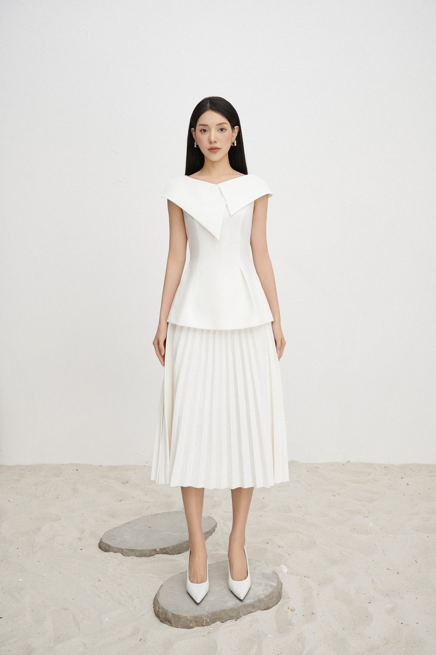Elevate your style with the feminine touch of the Lisa pleated skirt. Perfect for work or events with an elegant peplum top, or go casual by pairing it with a loose silk blouse for a laid-back city stroll.