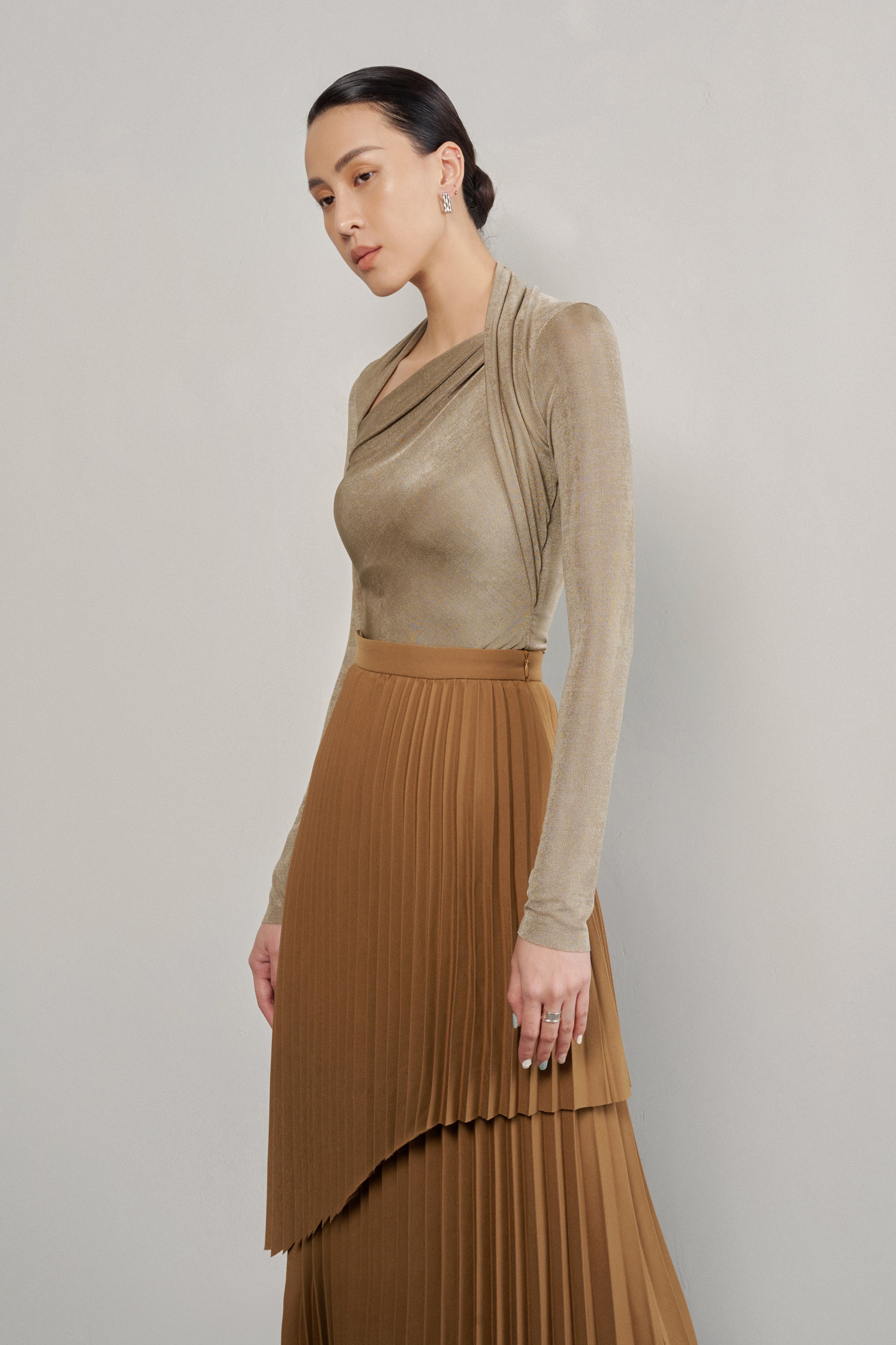 Get trendy with our Gingko pleated skirt featuring 2 layers and an asymmetric top hem. This skirt is perfect for any occasion, whether it's a casual day out or a formal event. With a zipper in the back, it's easy to wear and comfortable. Don't miss out on adding this unique and stylish piece to your wardrobe Note:*The product is ready to ship, shipping time varies from 5-15 days.**The product can be customized based on the measurement of 3 circumferences (bust, waist, hip) with an additional cost of 10-25%, and the customization time takes 1-3 days. Please contact us via...
