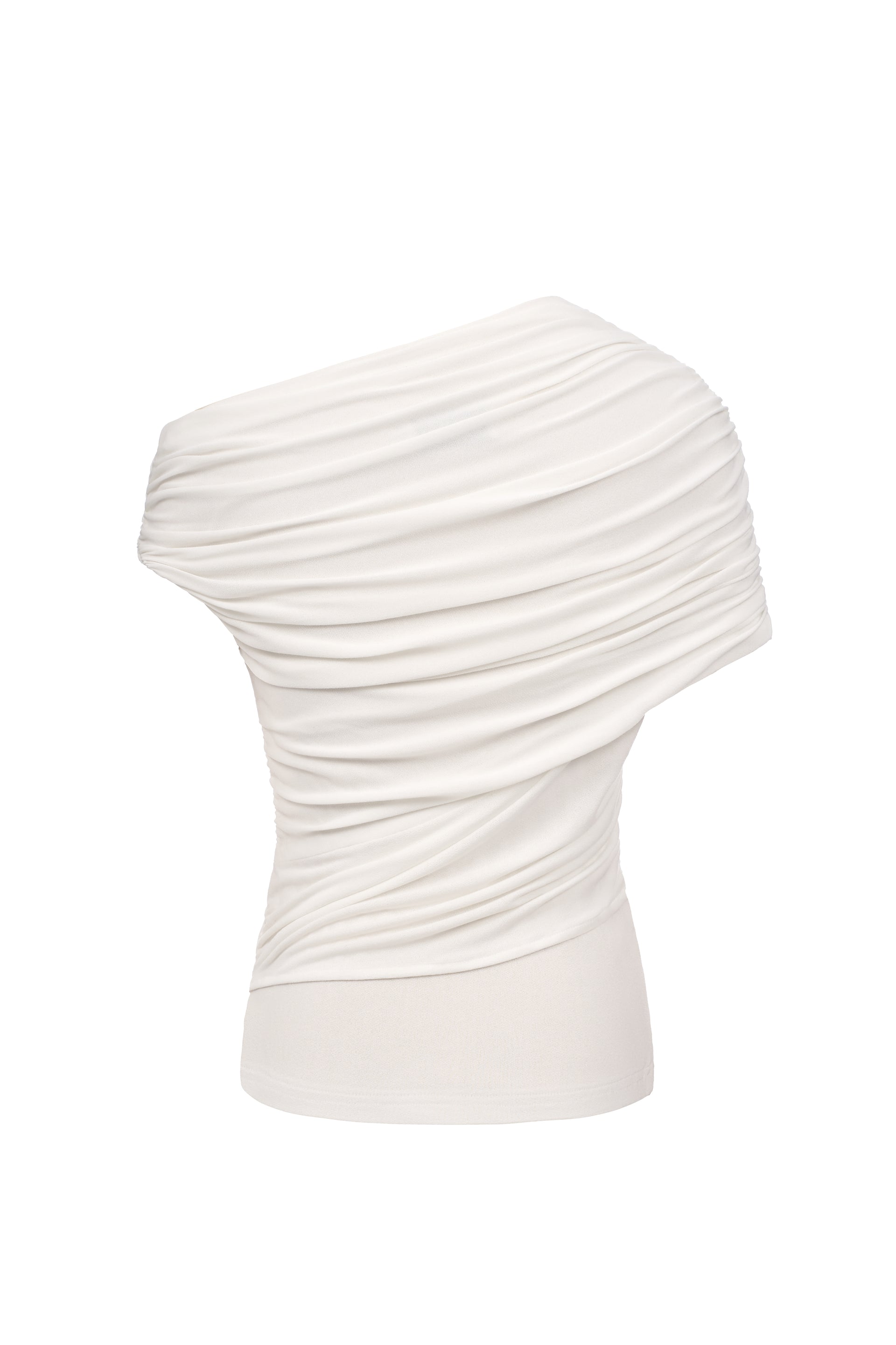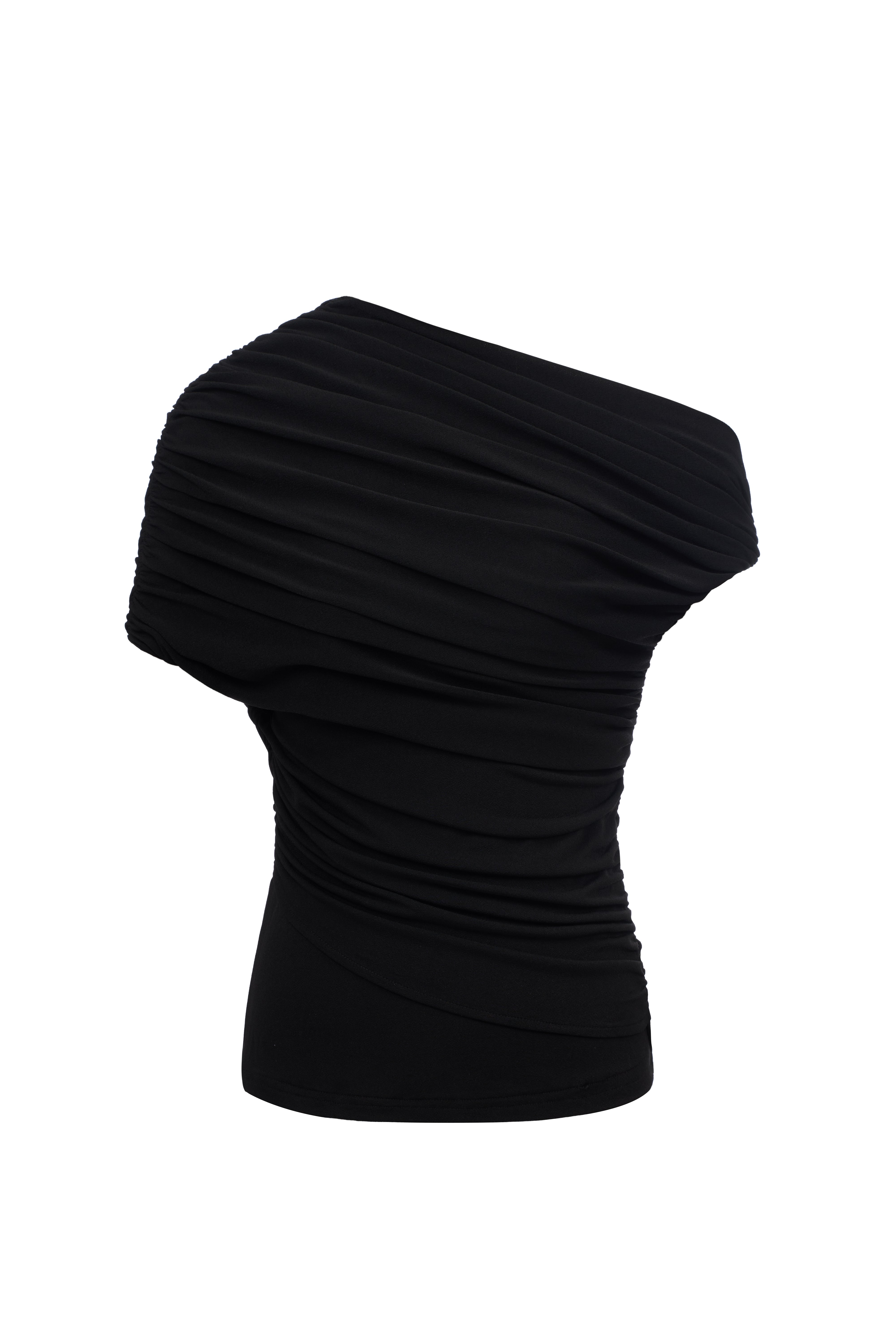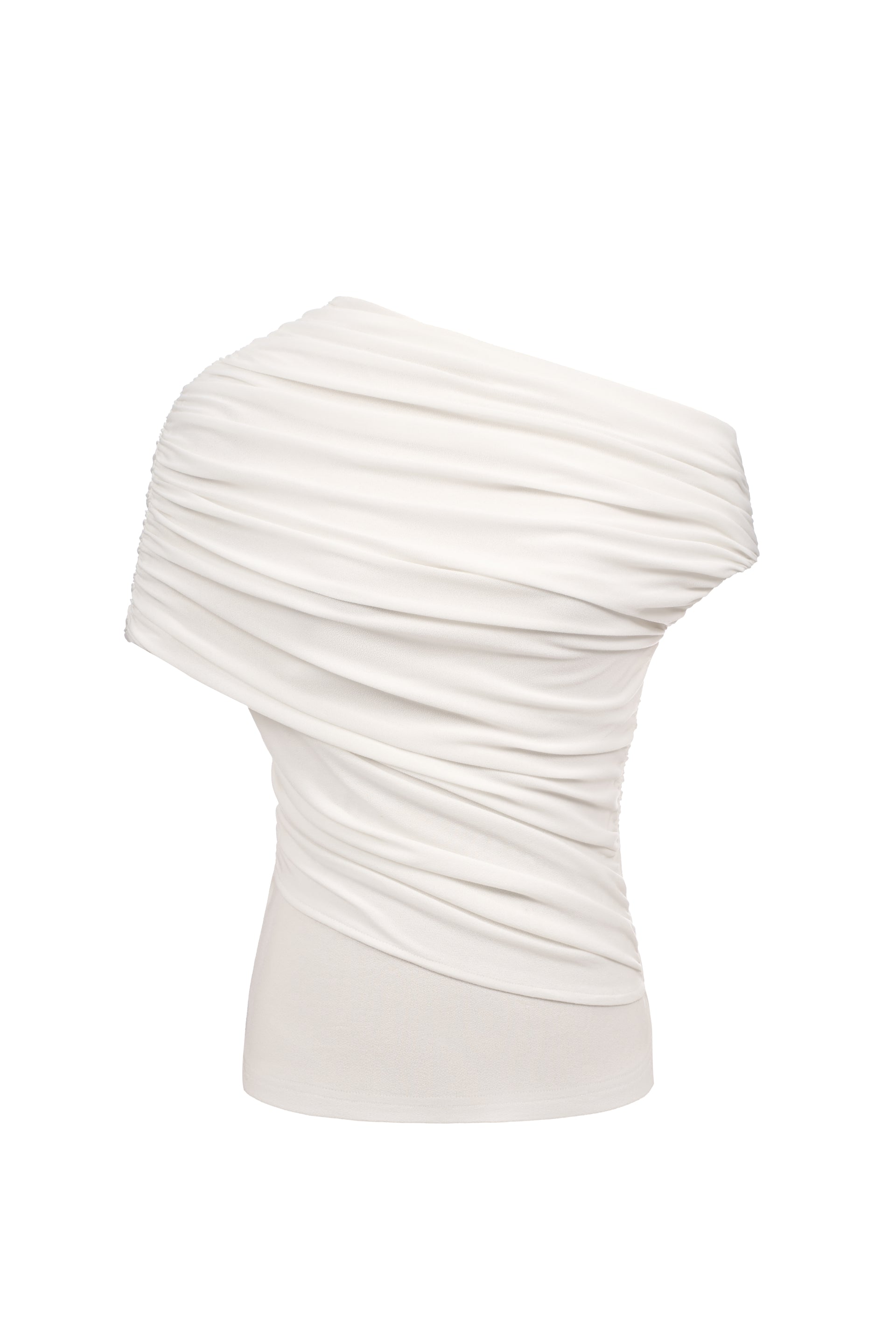 One-shoulder fitted top in stretchy jersey with asymmetrical ruching.