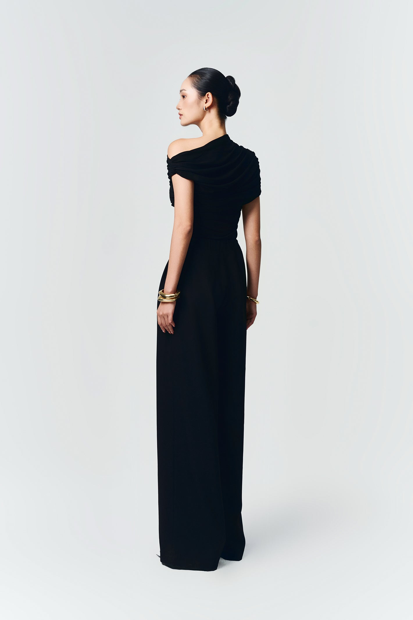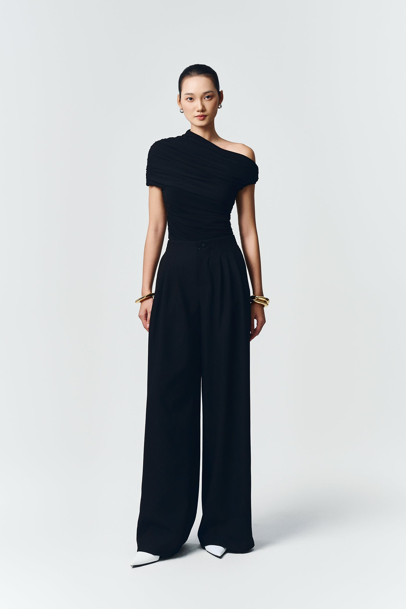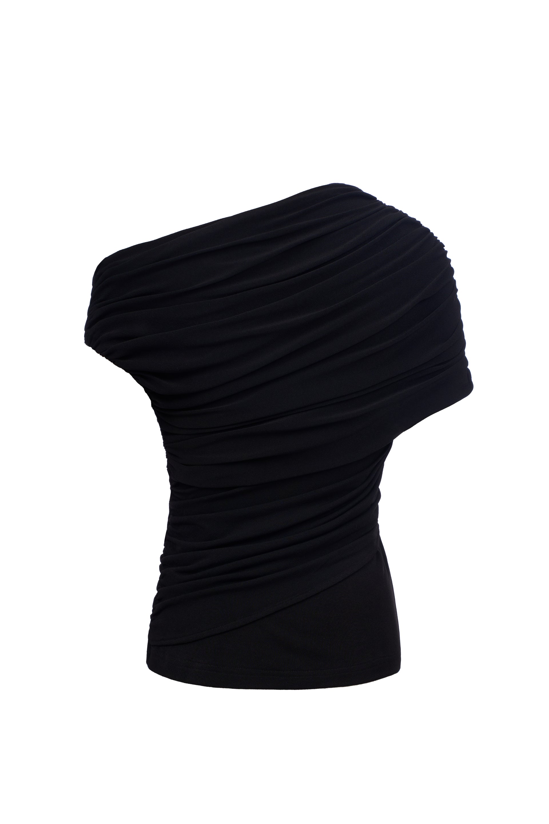 One-shoulder fitted top in stretchy jersey with asymmetrical ruching.