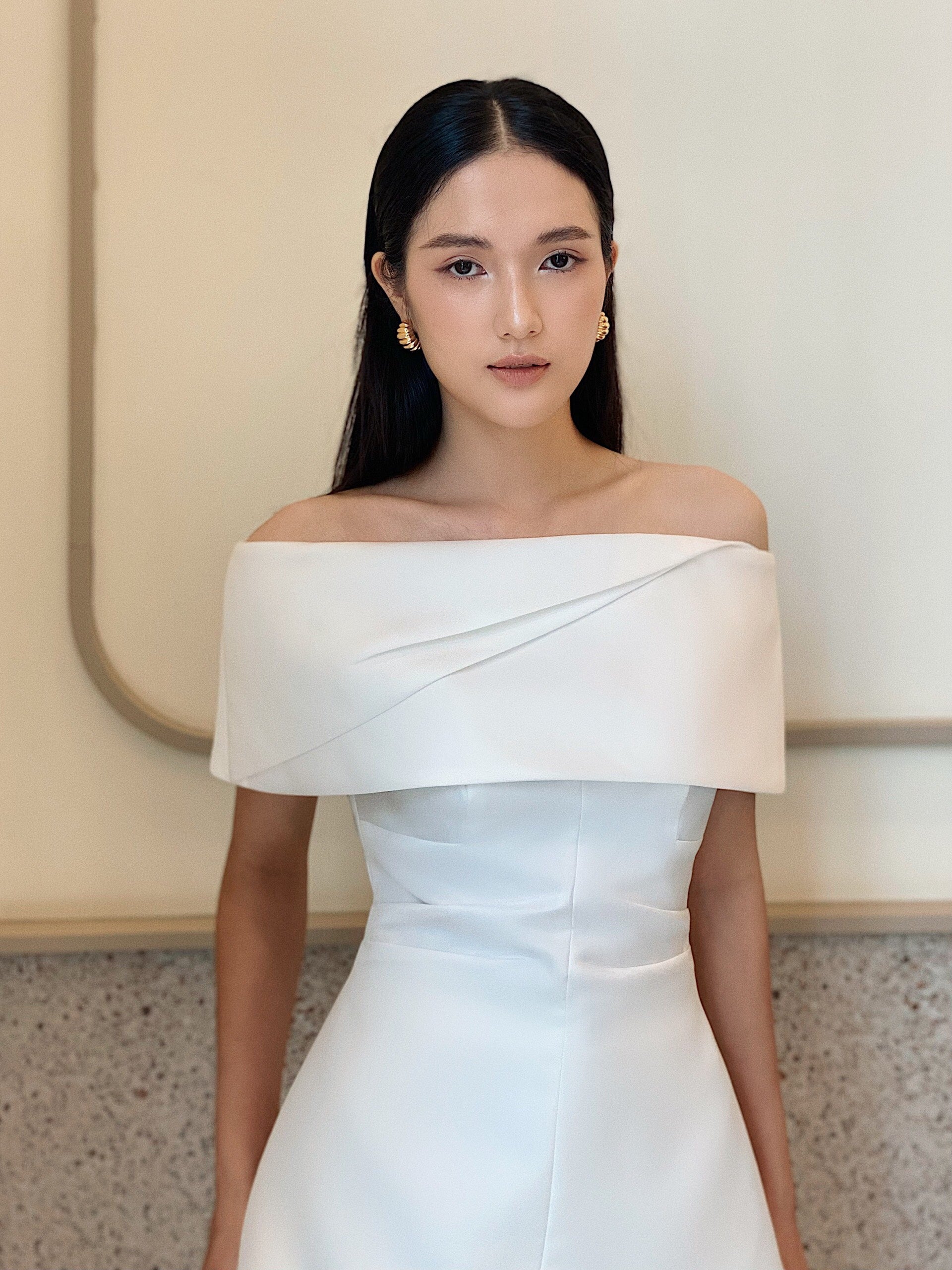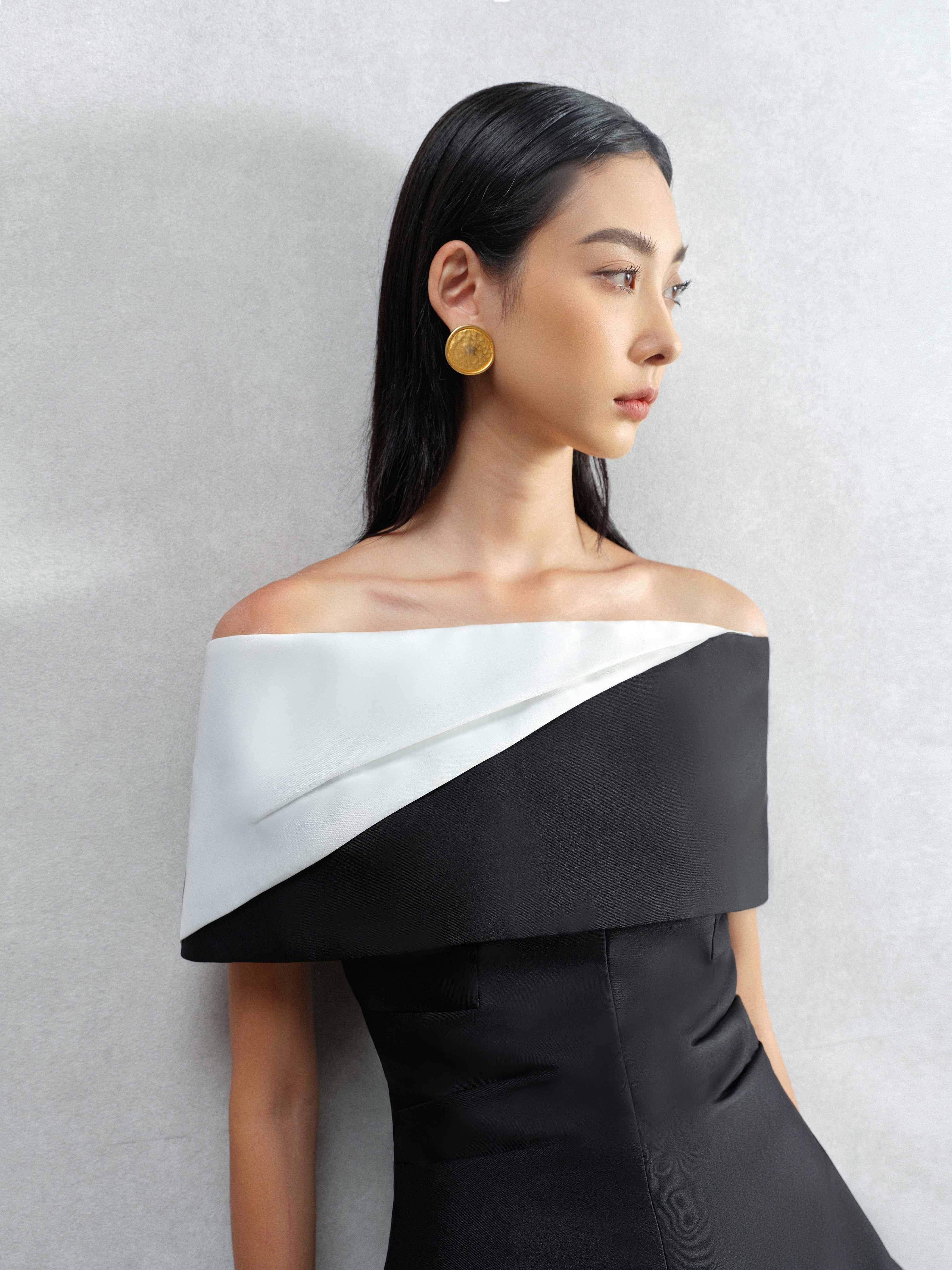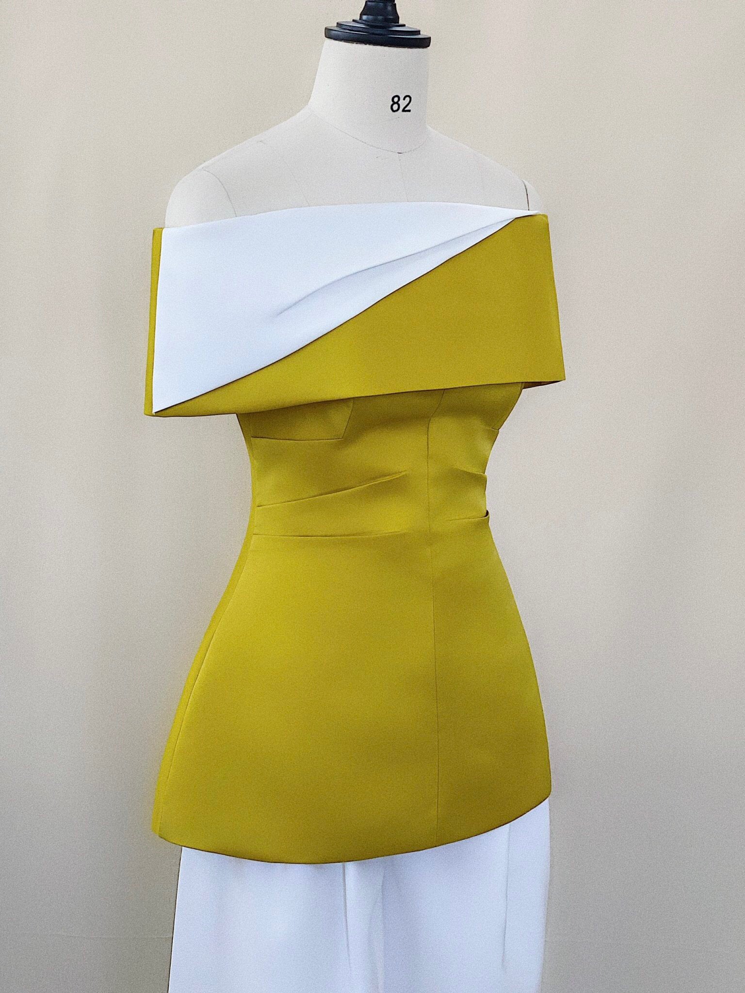 Off-the-shoulder wrapped top with white fabric and large pleats on the waist Note:*The product is ready to ship, shipping time varies from 5-15 days.**The product can be customized based on the measurement of 3 circumferences (bust, waist, hip) with an additional cost of 10-25%, and the customization time takes 1-3 days. Please contact us via email support@eegenstudio.com or Eegen fanpage for further assistance. Product details The off-the-shoulder top, wrapped around the body is mixed with white fabric.Two large pleats on both sides of the waist. Material: non stretchy fabric Size & Fit - Designs in the lookbook were made to...