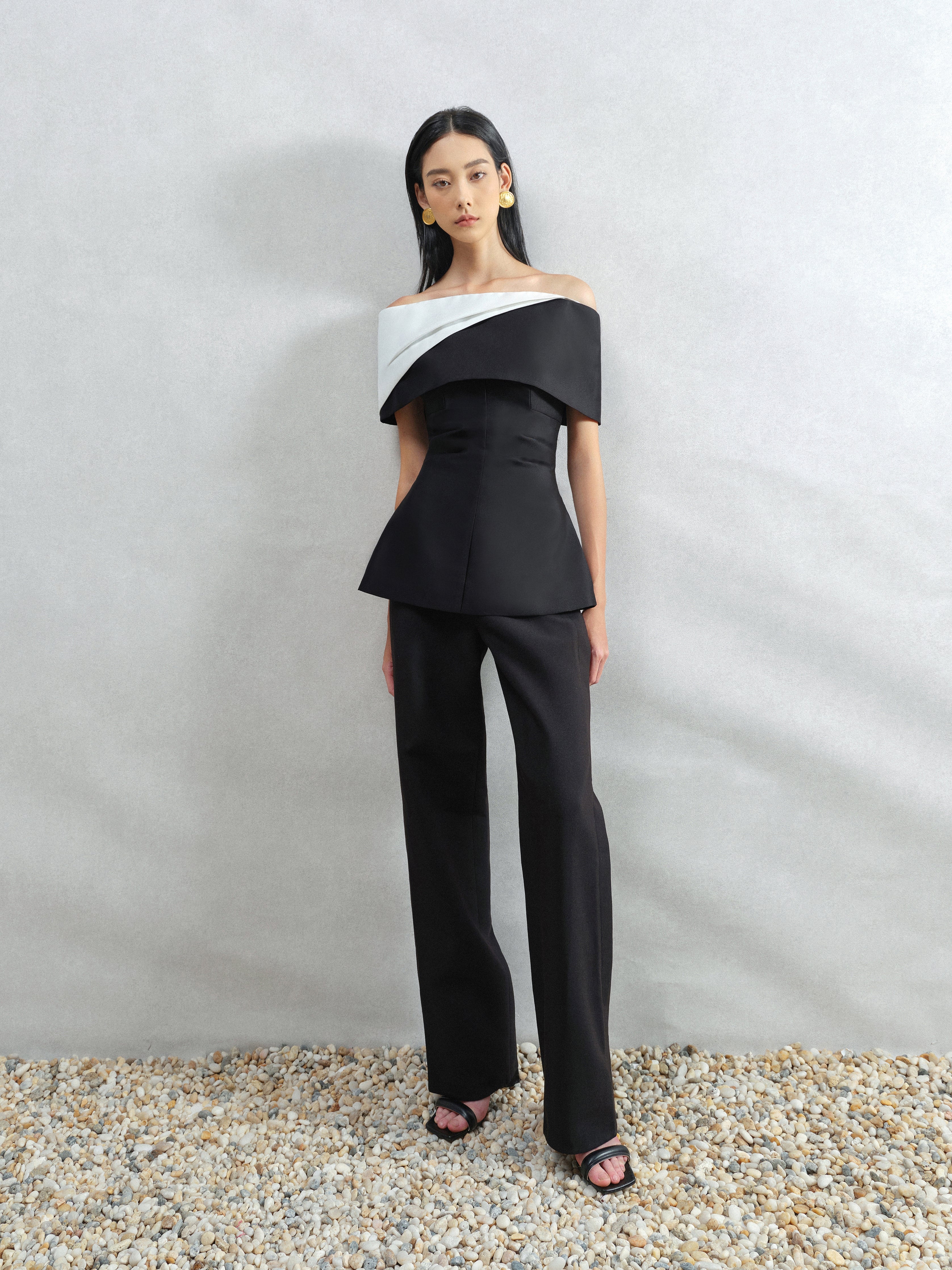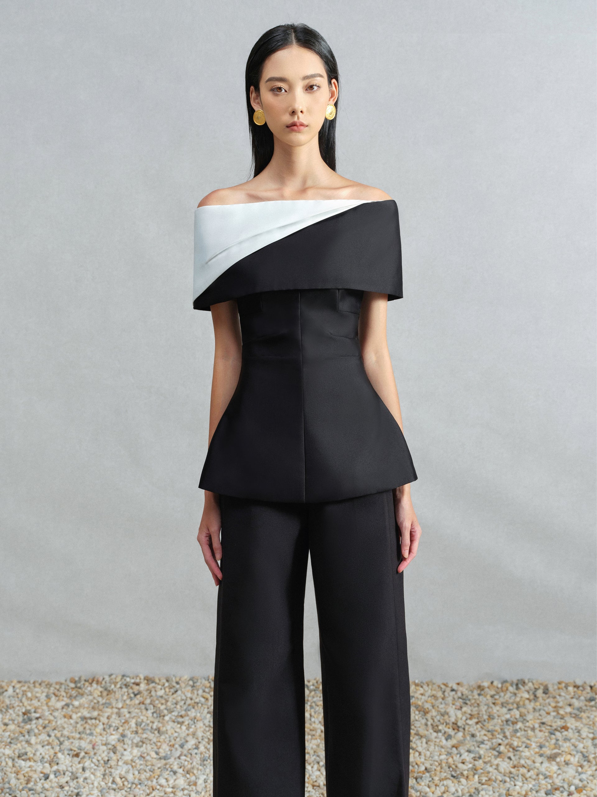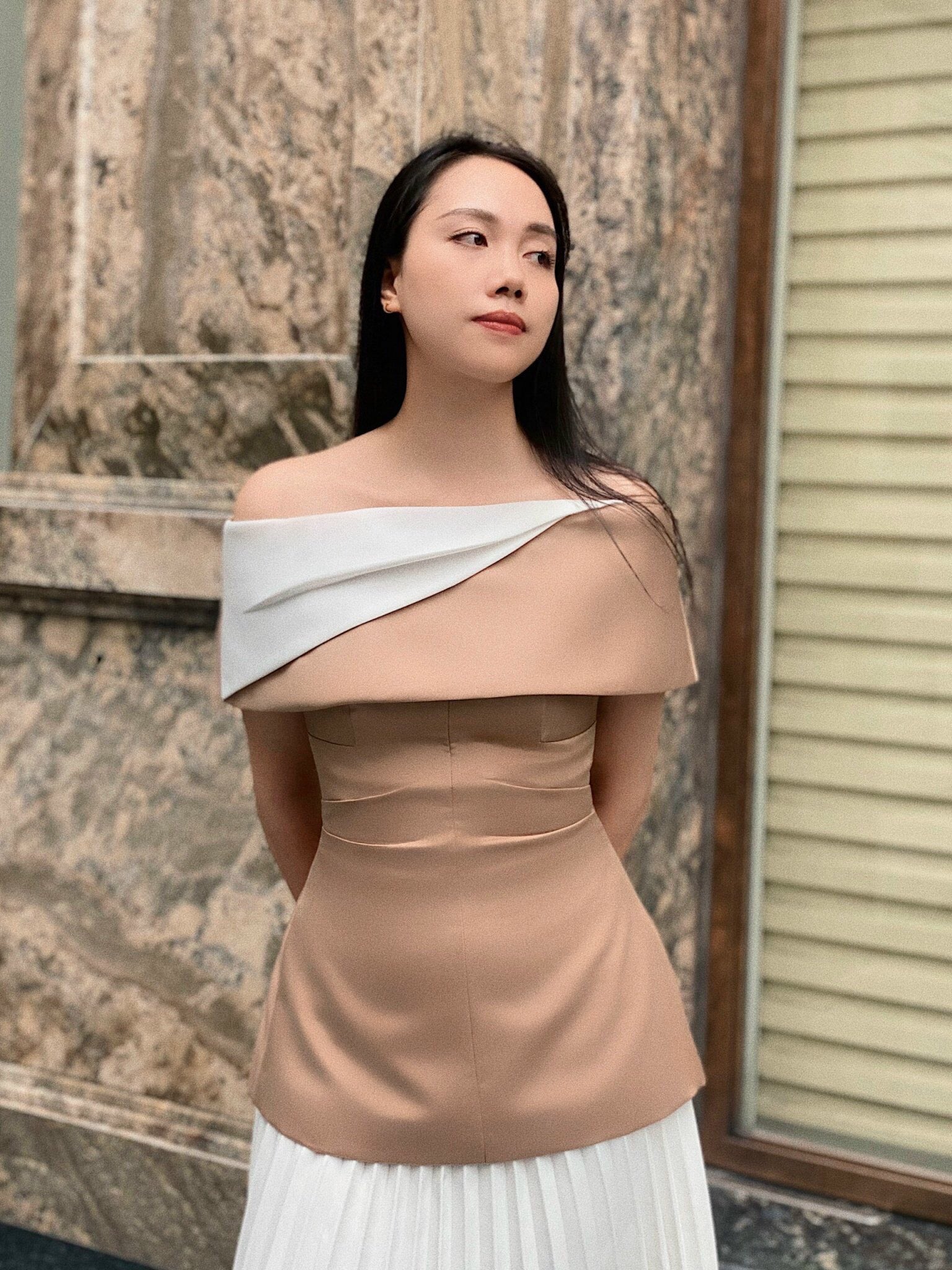 Off-the-shoulder wrapped top with white fabric and large pleats on the waist Note:*The product is ready to ship, shipping time varies from 5-15 days.**The product can be customized based on the measurement of 3 circumferences (bust, waist, hip) with an additional cost of 10-25%, and the customization time takes 1-3 days. Please contact us via email support@eegenstudio.com or Eegen fanpage for further assistance. Product details The off-the-shoulder top, wrapped around the body is mixed with white fabric.Two large pleats on both sides of the waist. Material: non stretchy fabric Size & Fit - Designs in the lookbook were made to...