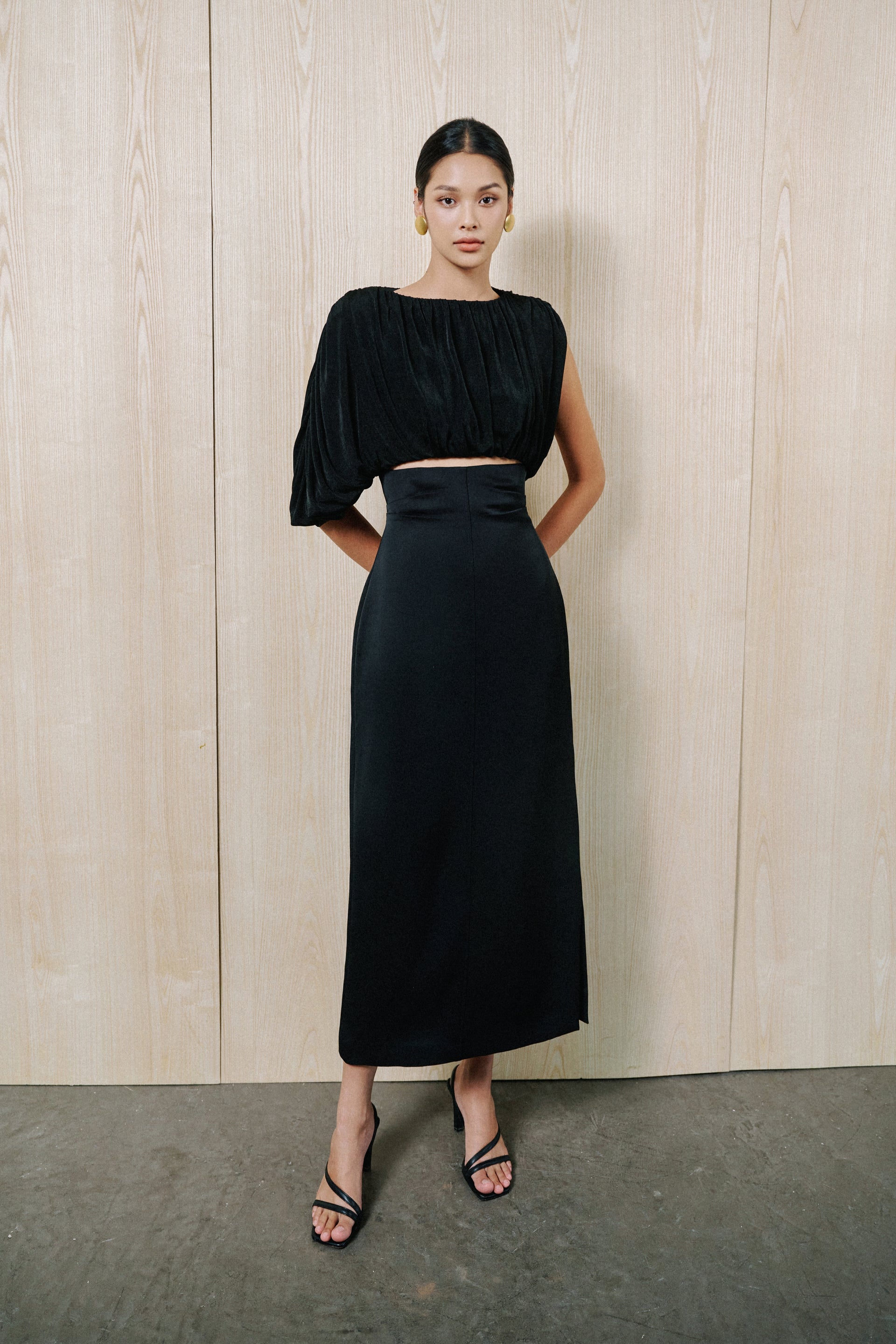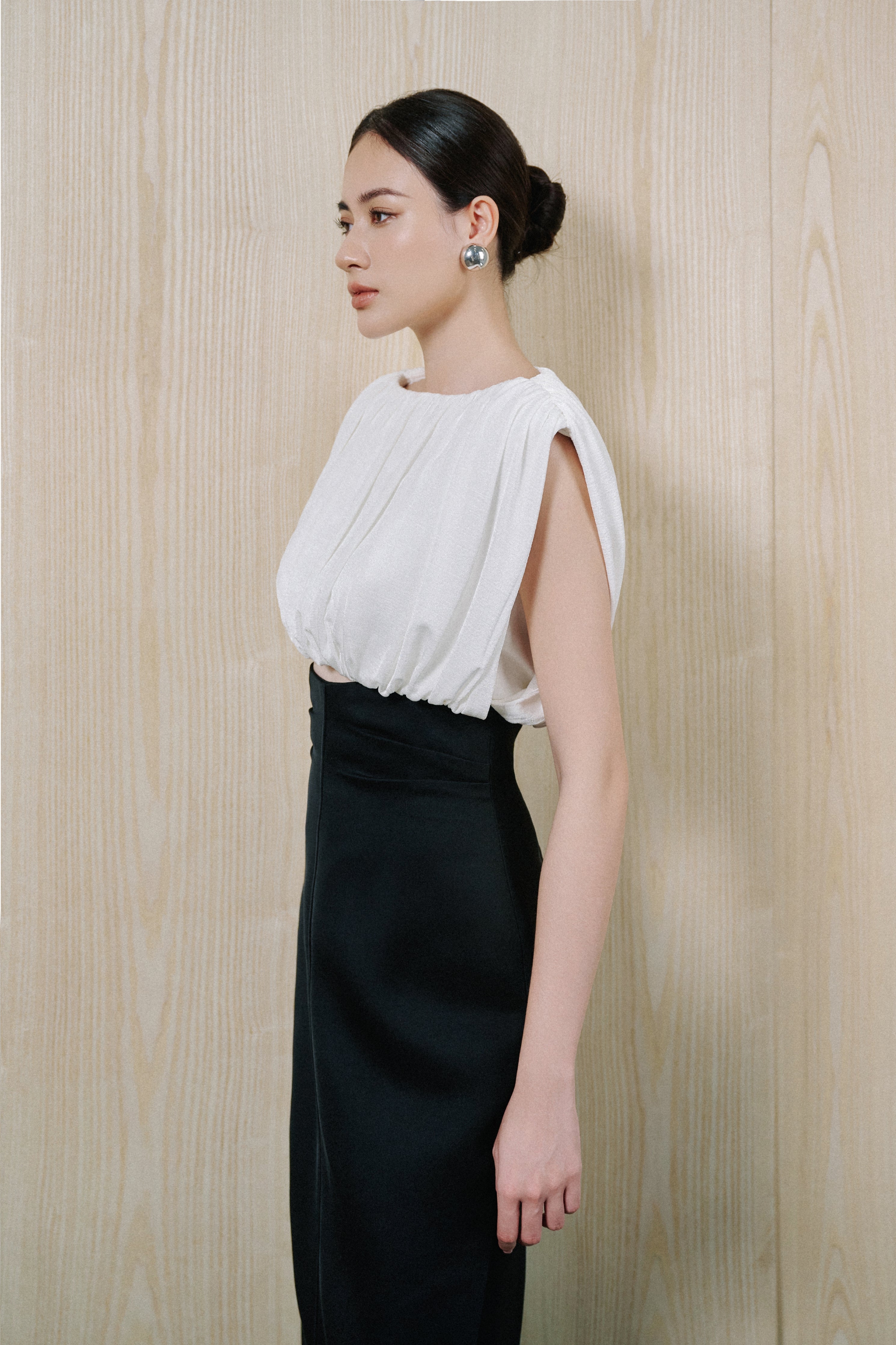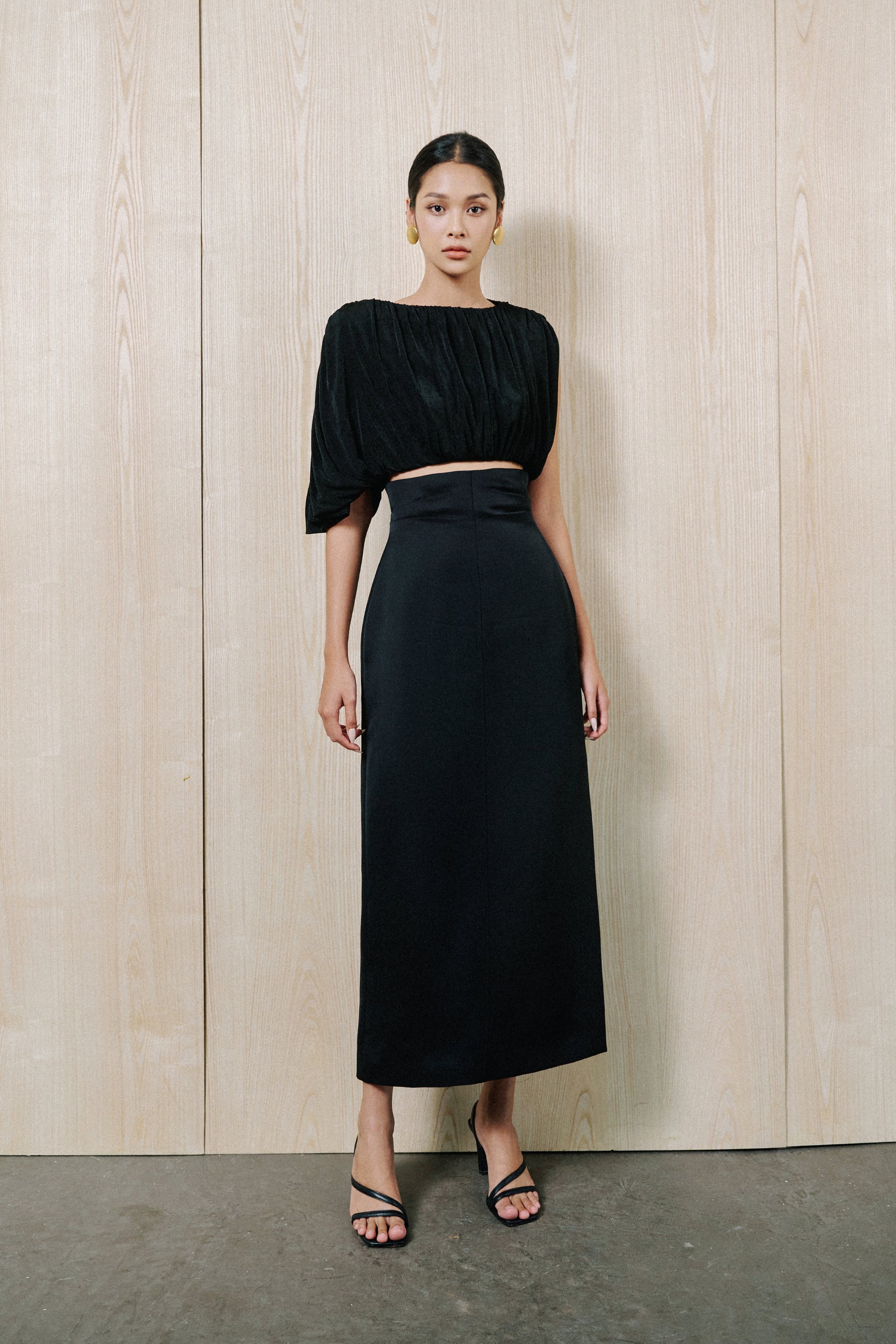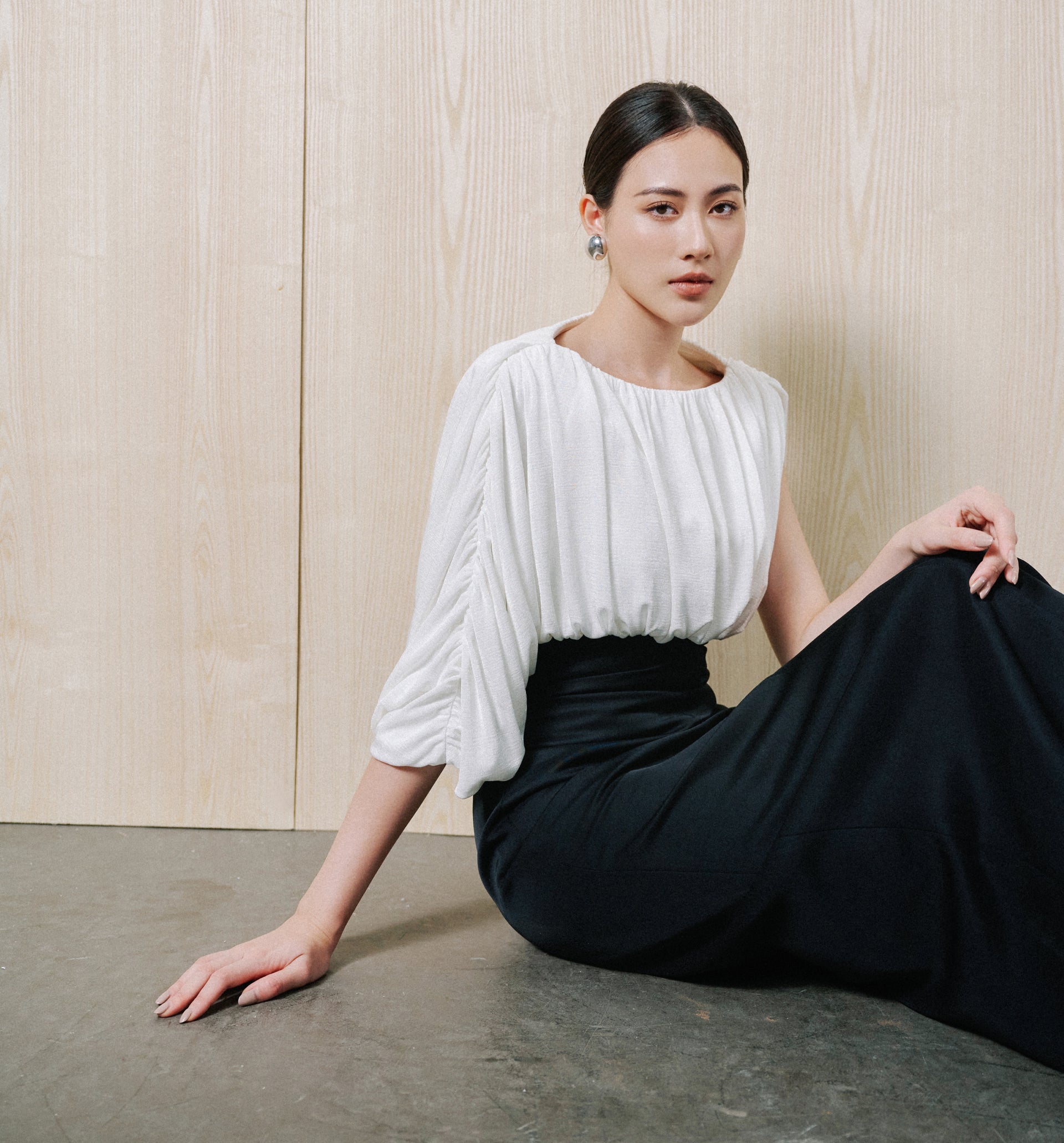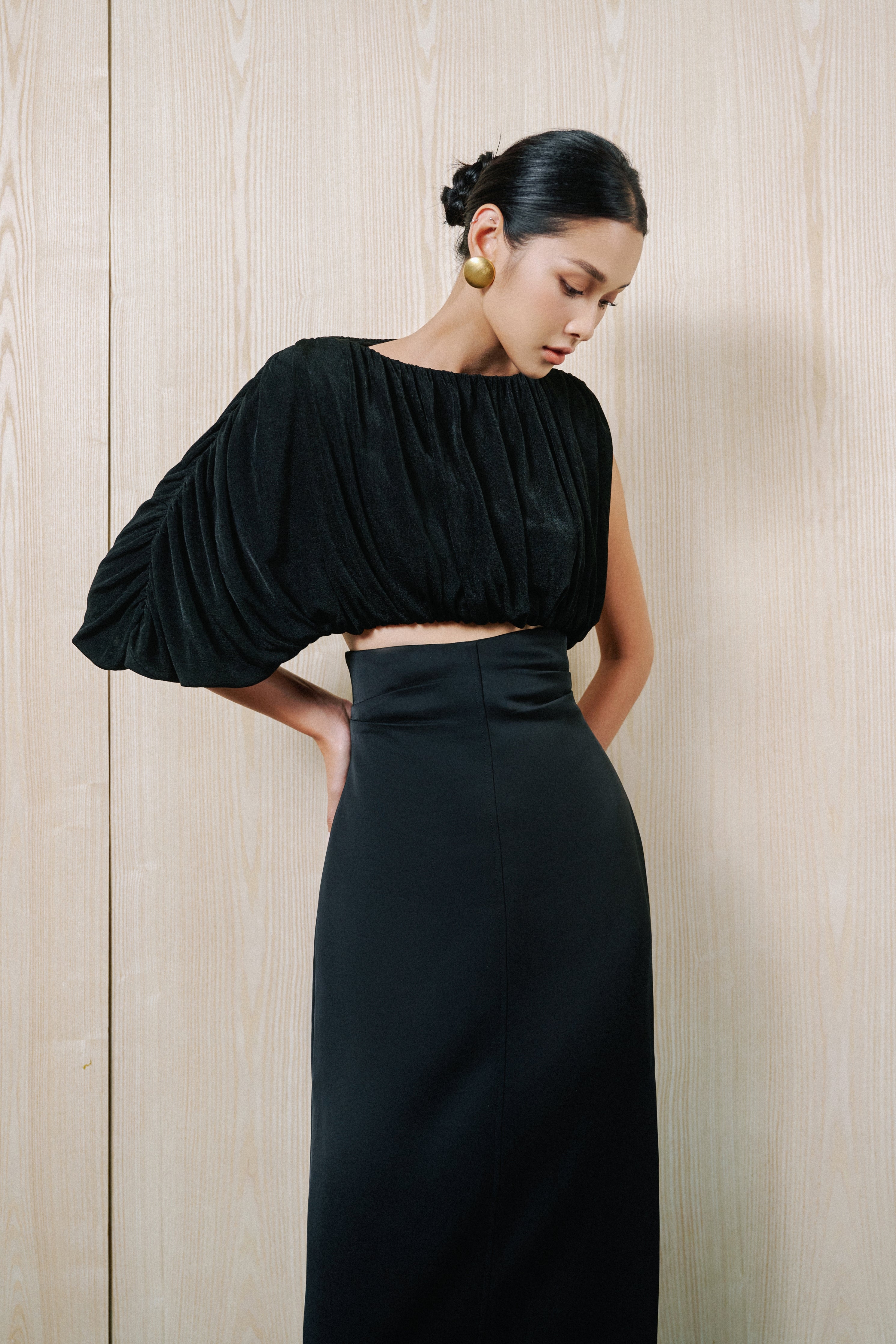 Asymmetrical crop top with a unique design. Featuring an elbow-length sleeve on the right side and no sleeve on the left, the bodice is fully gathered for a stylish and edgy look. The shirt also includes padded shoulders and a back zipper for a comfortable and secure fit Β  Note:*The product is ready to ship, shipping time varies from 5-15 days.**The product can be customized based on the measurement of 3 circumferences (bust, waist, hip) with an additional cost of 10-25%, and the customization time takes 1-3 days. Please contact us via email support@eegenstudio.com or Eegen fanpage for further assistance....