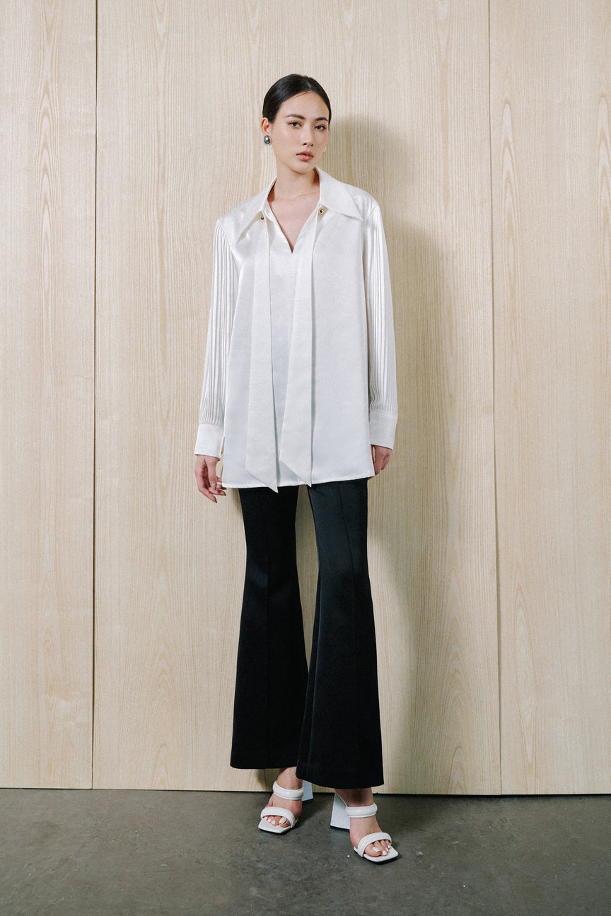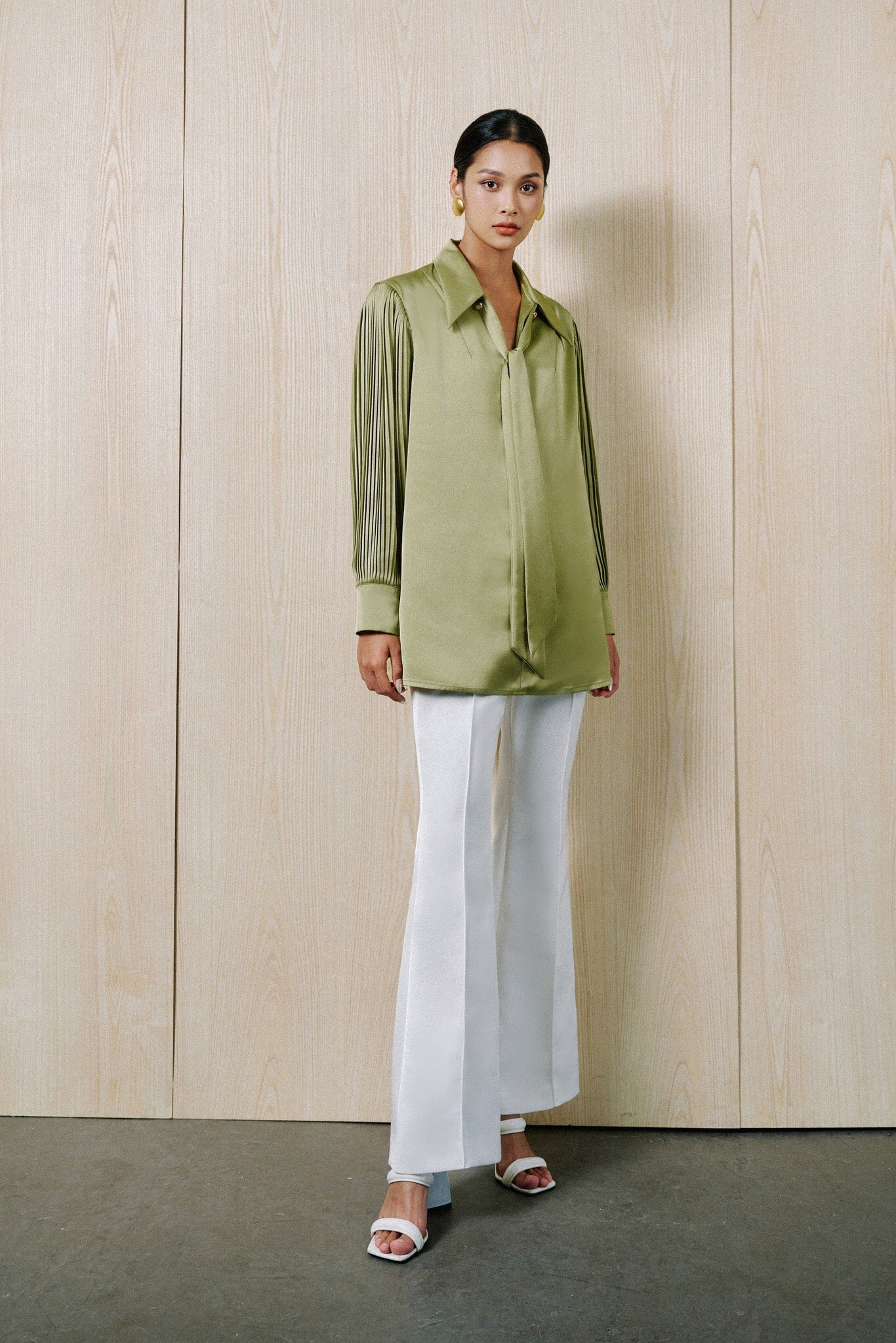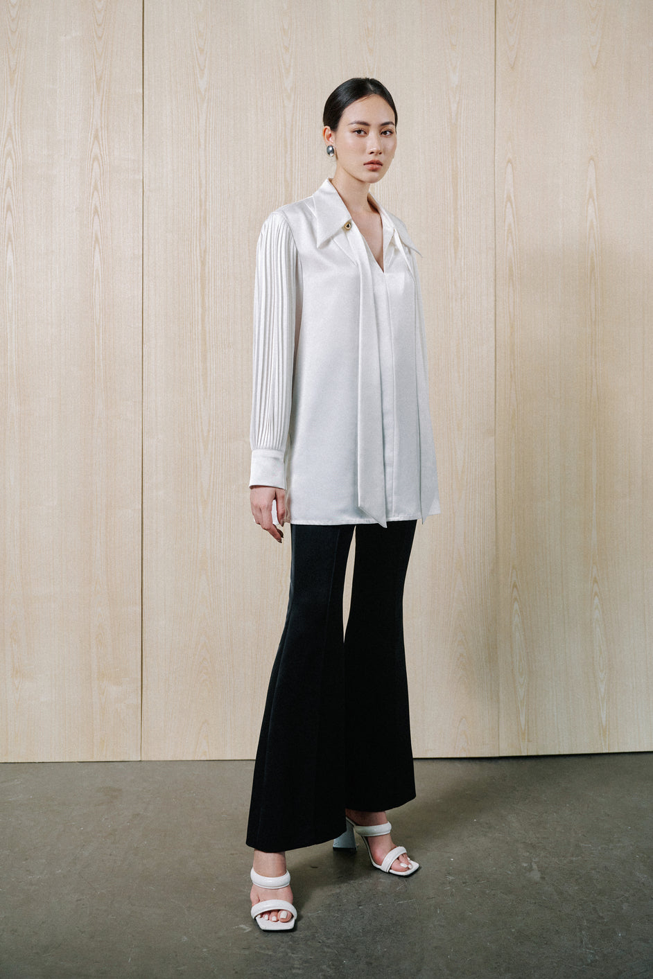 The Jersey Silk shirt features a simple, classic German collar with two elegant gold metal buttons at the base of the neck. The long sleeves have stamped cuffs in the middle of the sleeve. The shirt comes with detachable straps that can be tied in a bow around the neck or as a belt around the waist for versatile styling options Β  Note:*The product is ready to ship, shipping time varies from 5-15 days.**The product can be customized based on the measurement of 3 circumferences (bust, waist, hip) with an additional cost of 10-25%, and the customization time takes 1-3...