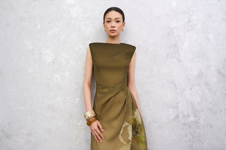 Like spring’s first breeze, the Verna Dress moves with unforced grace. An off-shoulder silhouette flatters with softness and subtle structure, while fluid draping lends an air of quiet allure. Feminine yet assured, it is a piece that speaks to the art of presence — where lightness meets strength.